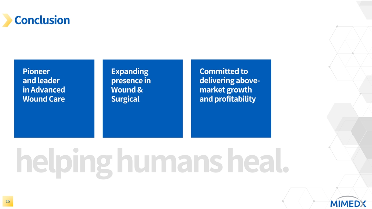 Conclusion Committed to Pioneer Expanding and leader presence in delivering above- in Advanced Wound & market growth Wound Care Surgical and profitability helping humans heal. 15
