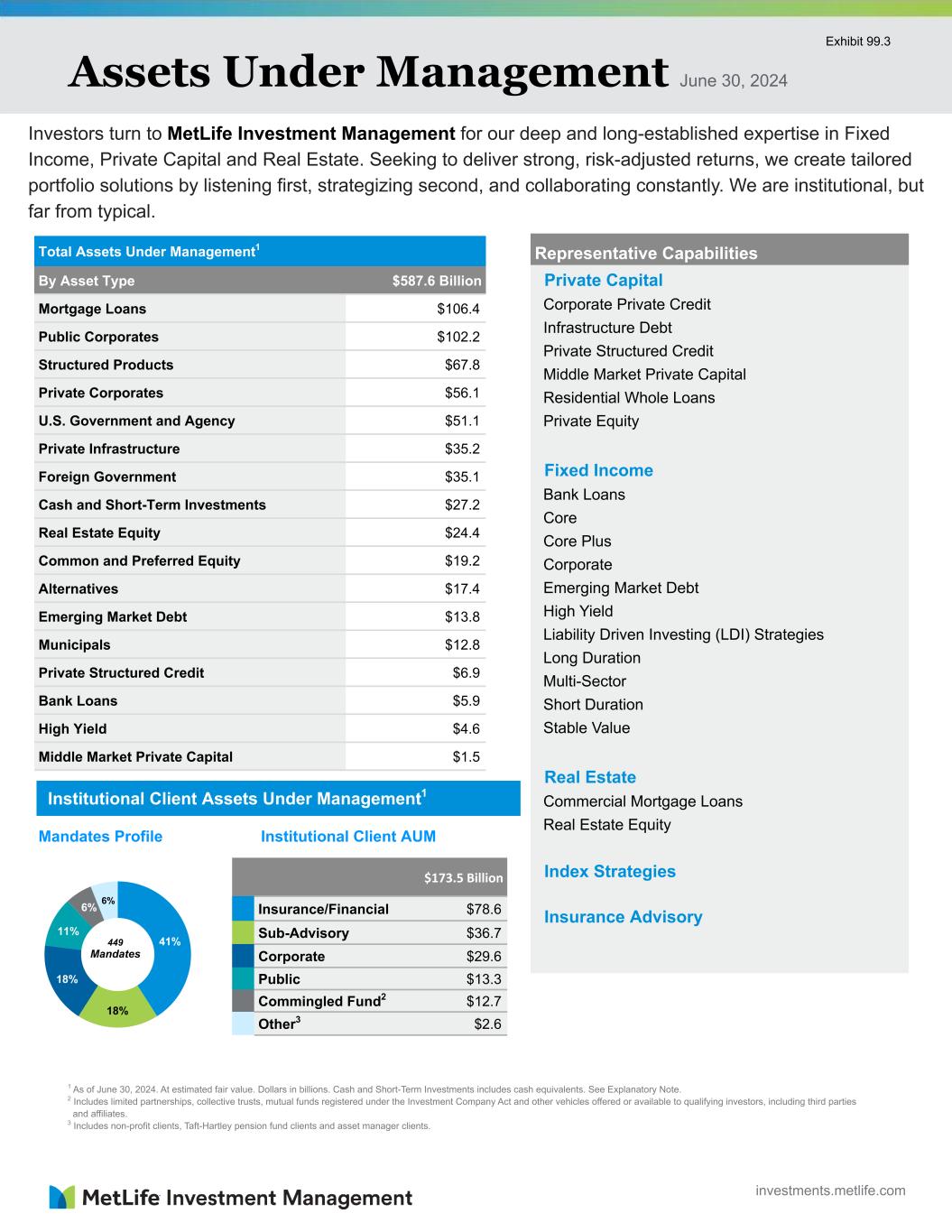 | • | Total MetLife, Inc.’s common stockholders’ equity, excluding AOCI other than FCTA: total MetLife, Inc.’s common stockholders’ equity, excluding the net unrealized investment gains (losses), future policy benefits discount rate remeasurement gains (losses), market risk benefits instrument-specific credit risk remeasurement gains (losses) and defined benefit plans adjustment components of AOCI, net of income tax. | |||||||||||||