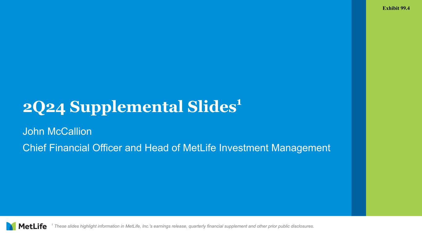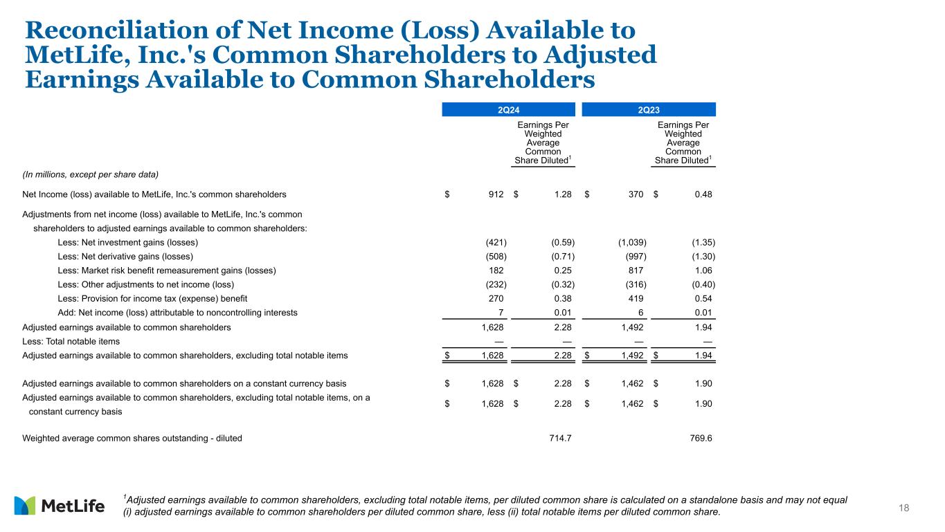 | • | Return on MetLife, Inc.’s common stockholders’ equity: net income (loss) available to MetLife, Inc.’s common shareholders divided by MetLife, Inc.'s average common stockholders’ equity. | |||||||||||||