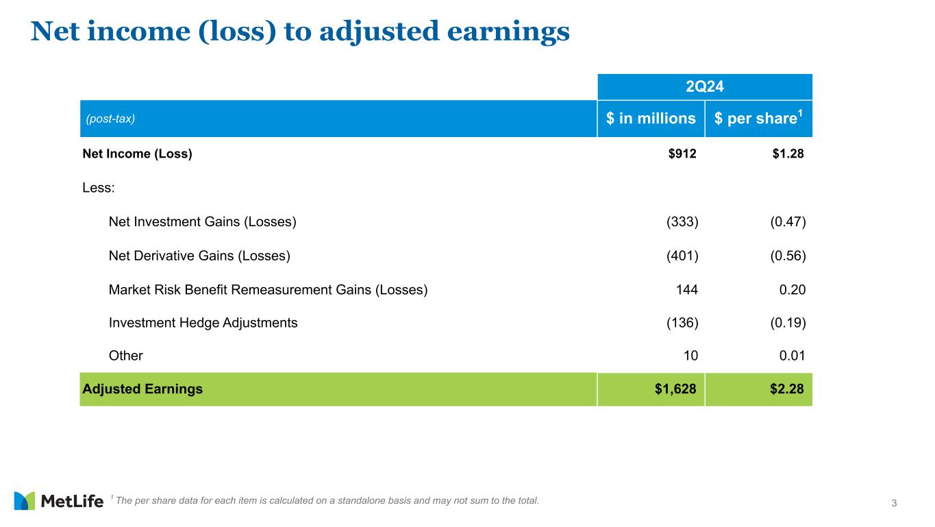 | (ii) | net income (loss) per share; | (ii) | net income (loss) available to MetLife, Inc.’s common shareholders per diluted common share; | |||||||||||