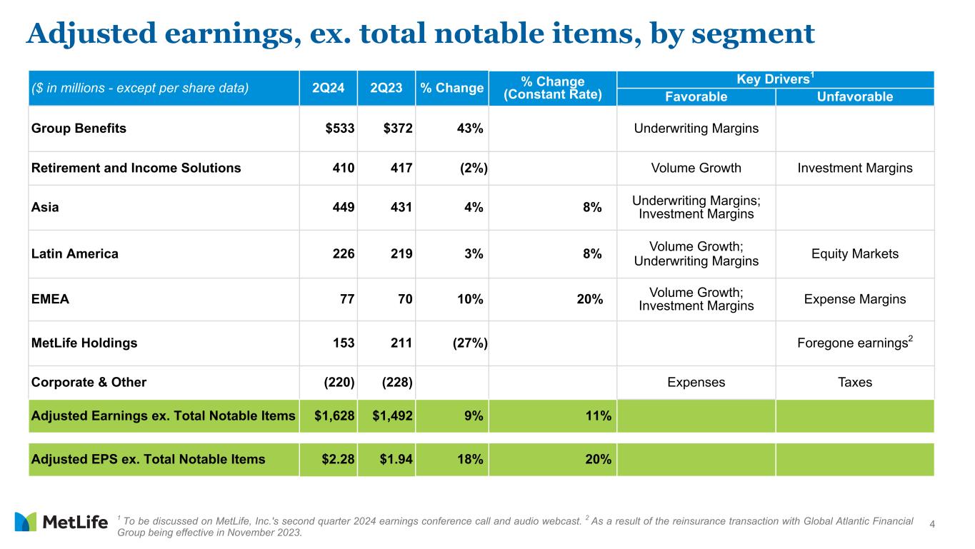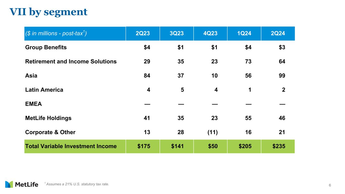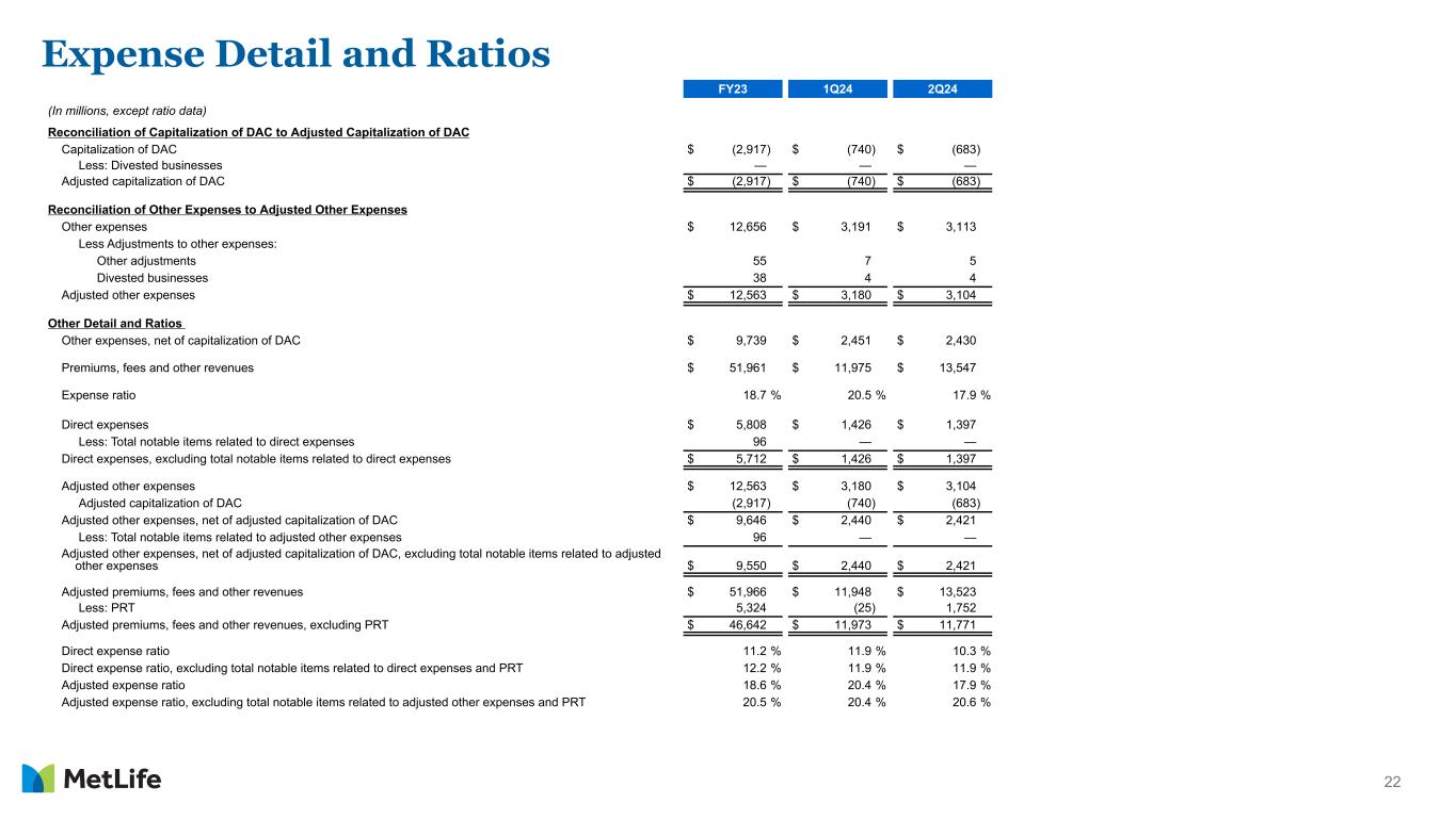| (4) Includes MetLife, Inc.'s share of adjusted other expenses for operating joint ventures in: (i) China, (ii) India, (iii) Malaysia and (iv) Vietnam, on the basis of proportional consolidation and MetLife's percentage ownership. These operating joint ventures are accounted for using the equity method of accounting under GAAP. | |||||||||||||||||||||||||||||||||||||||||||||||||||||