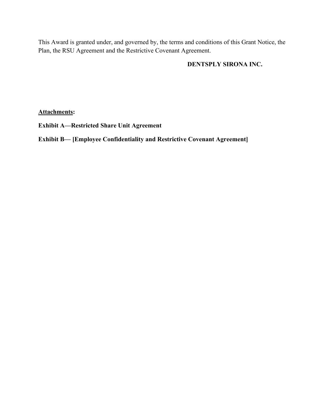 This Award is granted under, and governed by, the terms and conditions of this Grant Notice, the Plan, the RSU Agreement and the Restrictive Covenant Agreement. DENTSPLY SIRONA INC. Attachments: Exhibit A—Restricted Share Unit Agreement Exhibit B— [Employee Confidentiality and Restrictive Covenant Agreement]