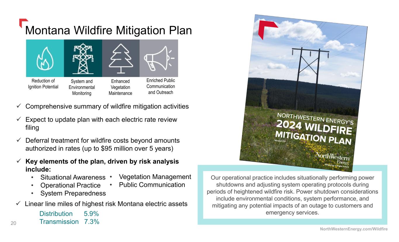 Colstrip Facility Ownership Overview 19 In January 2026, we will own 55% of Colstrip Units 3 &4. This allows us to guide investments in operation and maintenance in providing on- demand, 24/7 cost-effective generation for our Montana customers until a viable equivalent, carbon-free energy resource is available.