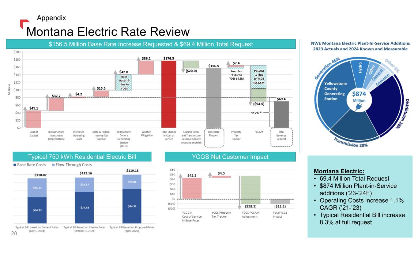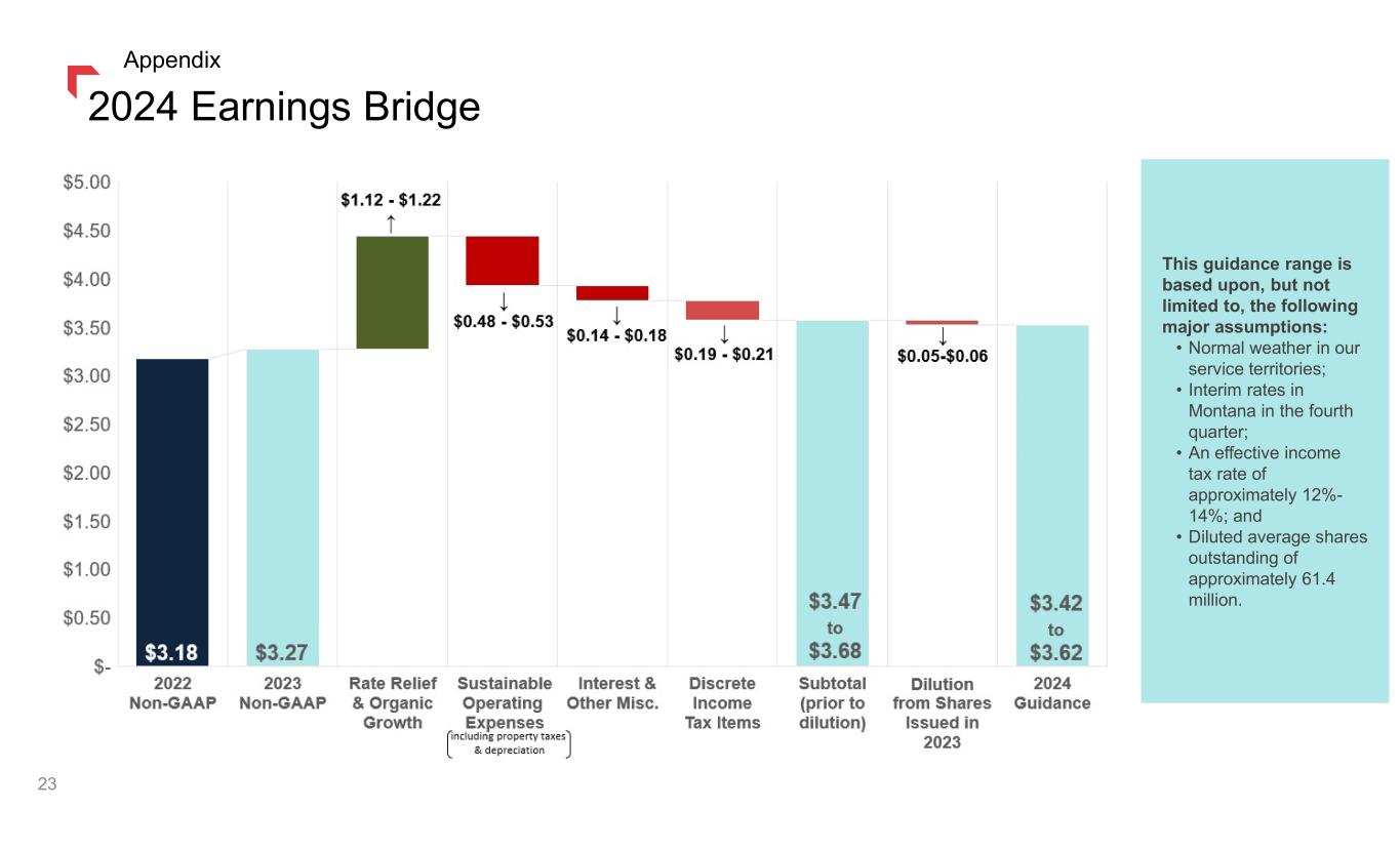 2024 Earnings Bridge This guidance range is based upon, but not limited to, the following major assumptions: • Normal weather in our service territories; • Interim rates in Montana in the fourth quarter; • An effective income tax rate of approximately 12%- 14%; and • Diluted average shares outstanding of approximately 61.4 million. 23 Appendix