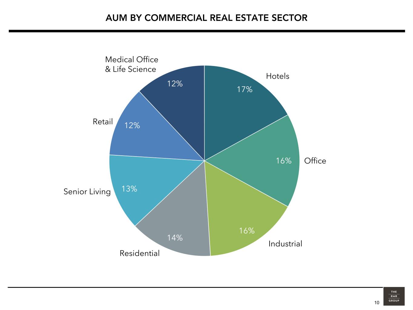 10 AUM BY COMMERCIAL REAL ESTATE SECTOR Hotels Office Industrial Residential Senior Living Retail Medical Office & Life Science 17% 16% 16% 14% 13% 12% 12%