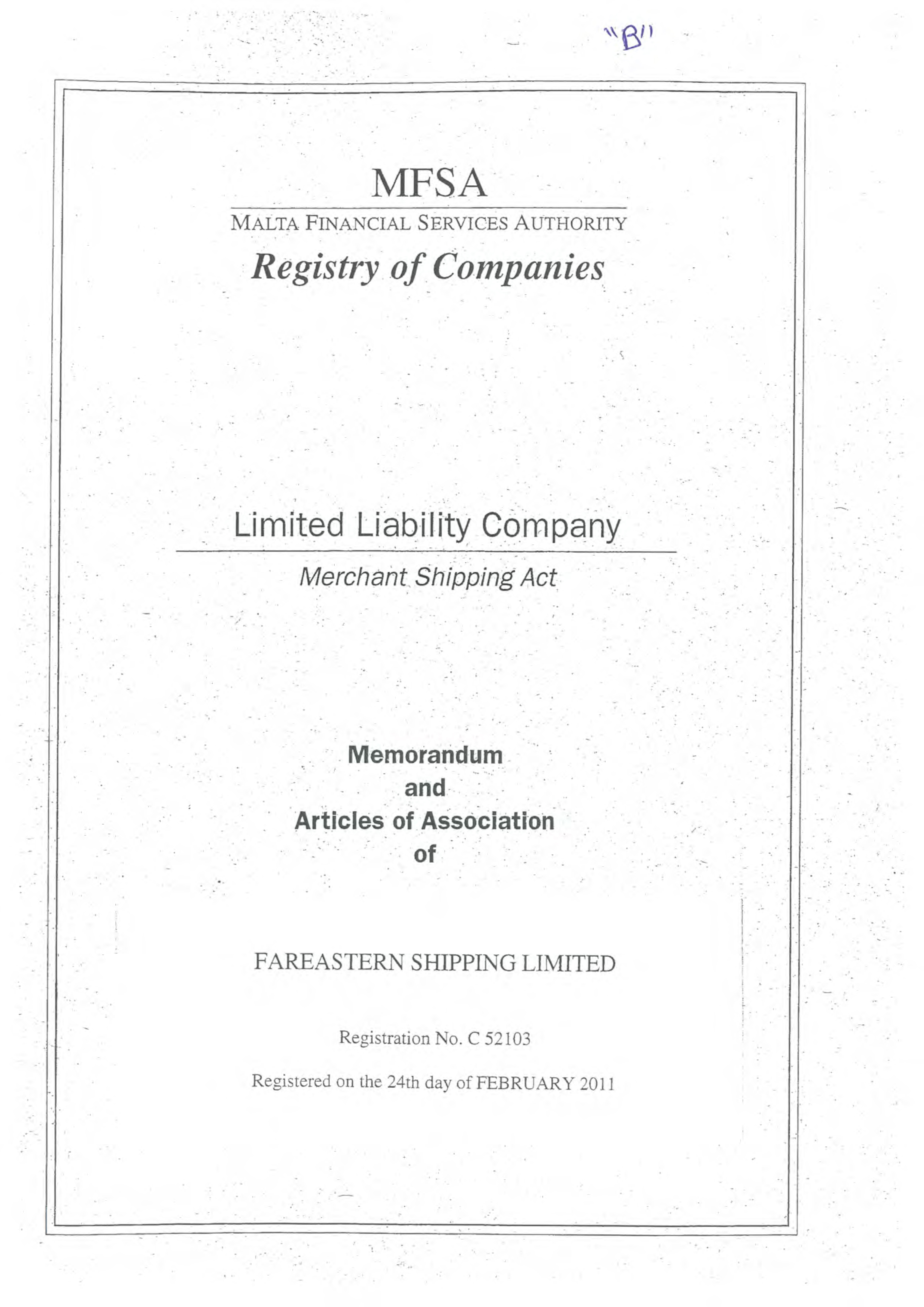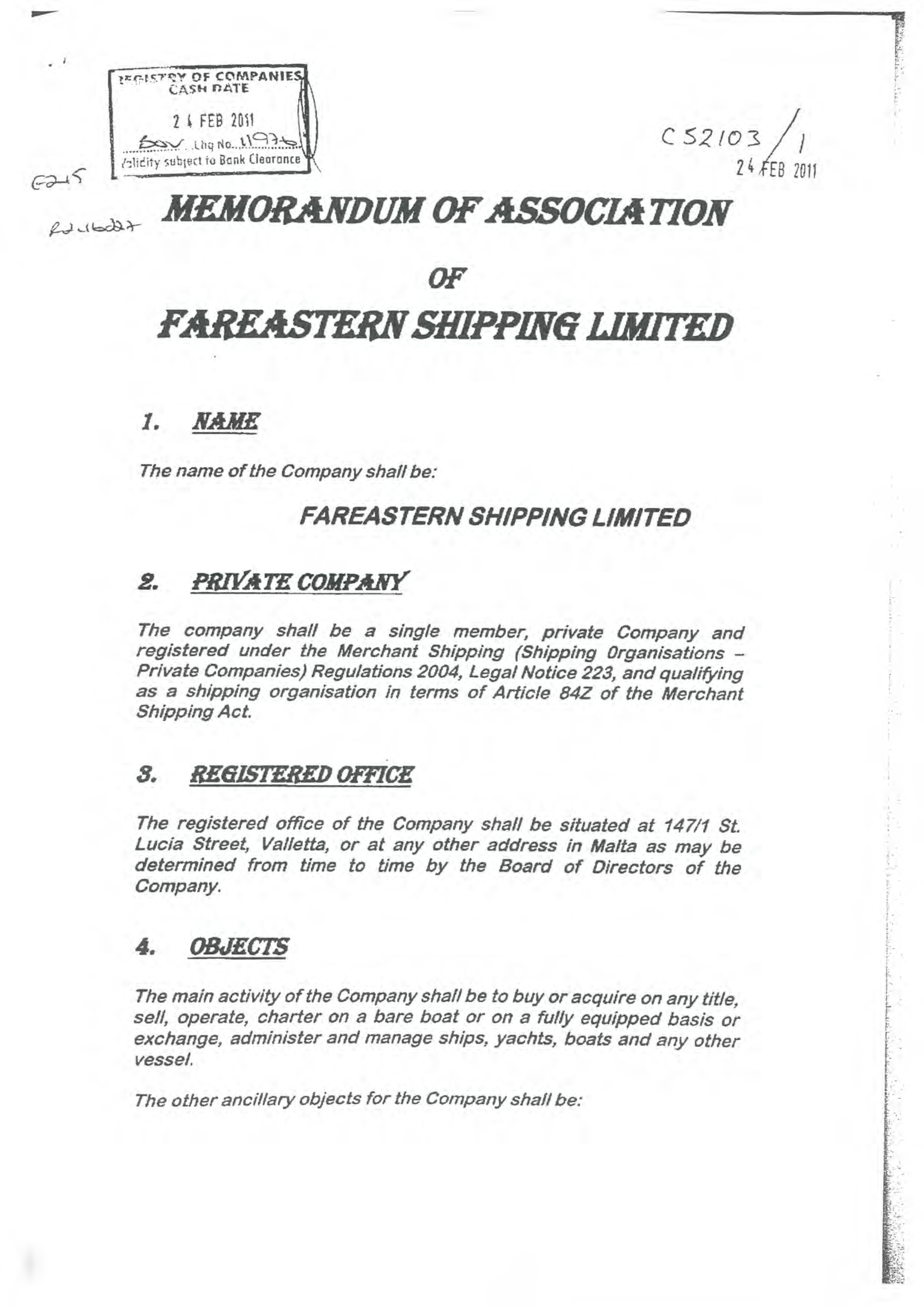 | FAREASTERN SHIPPING LIMITED | |||