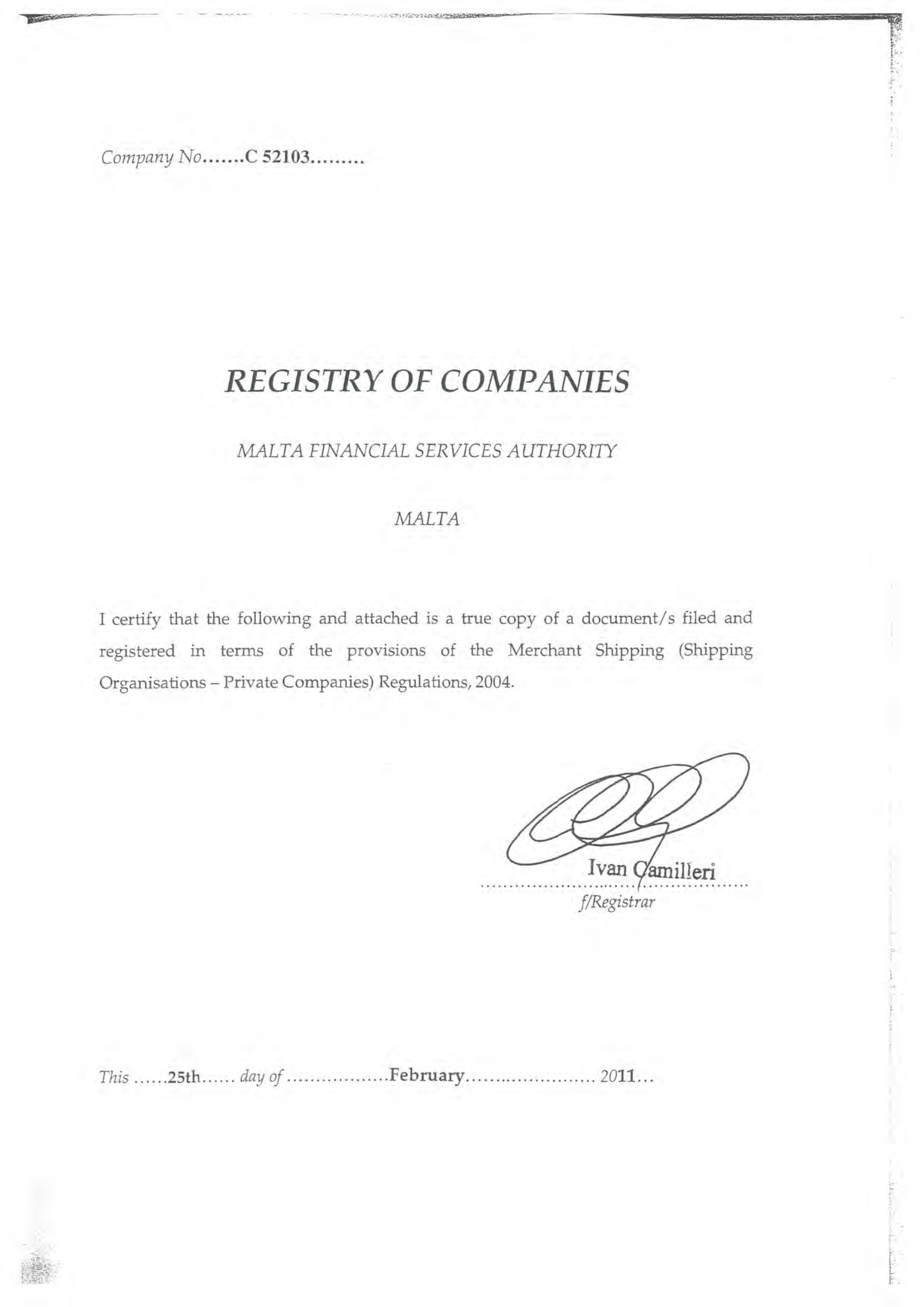 | Fareastern Shipping Limited | Malta | 100% | | ||