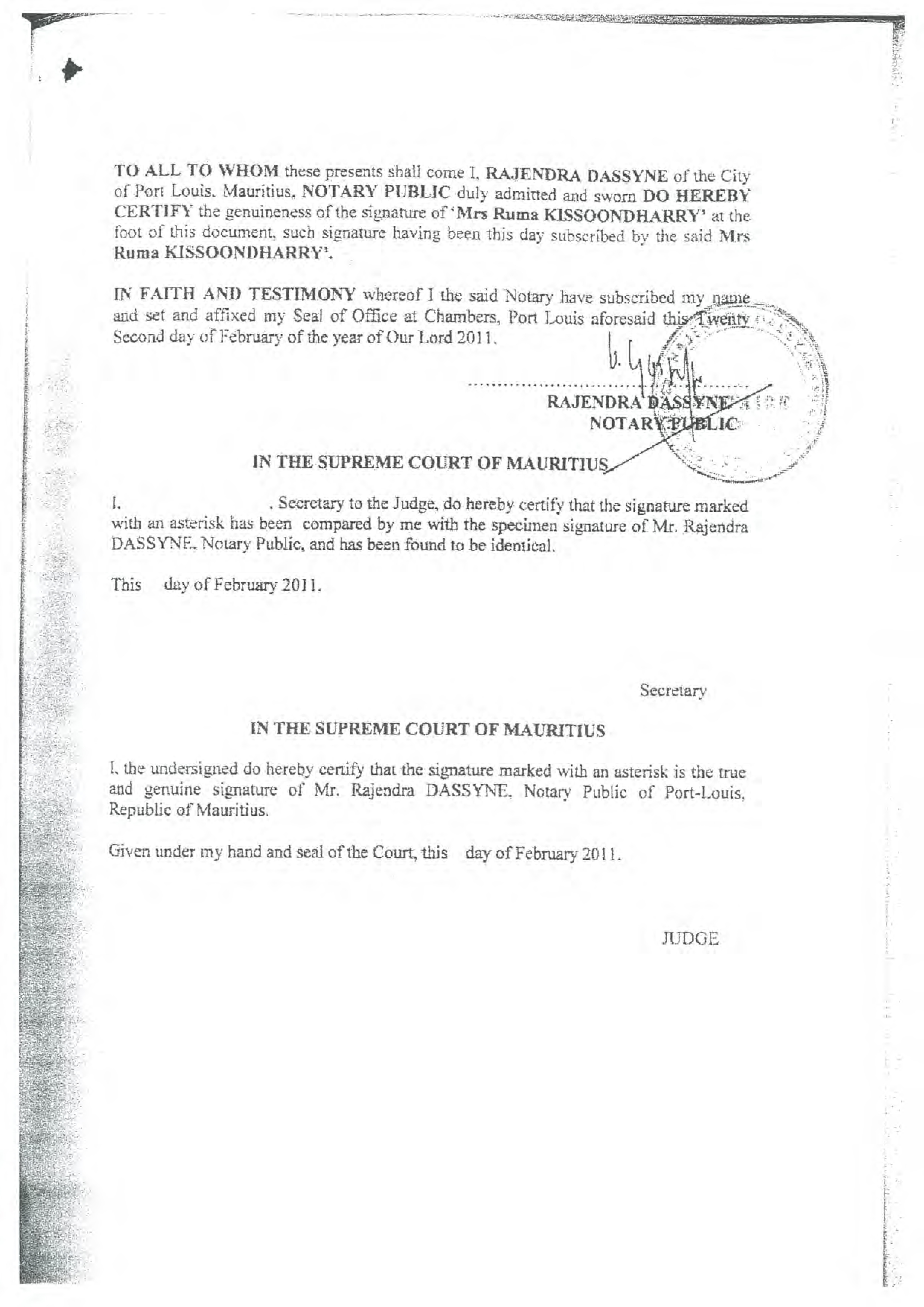 | By: | /s/ Ruma Kissoondharry | ||
