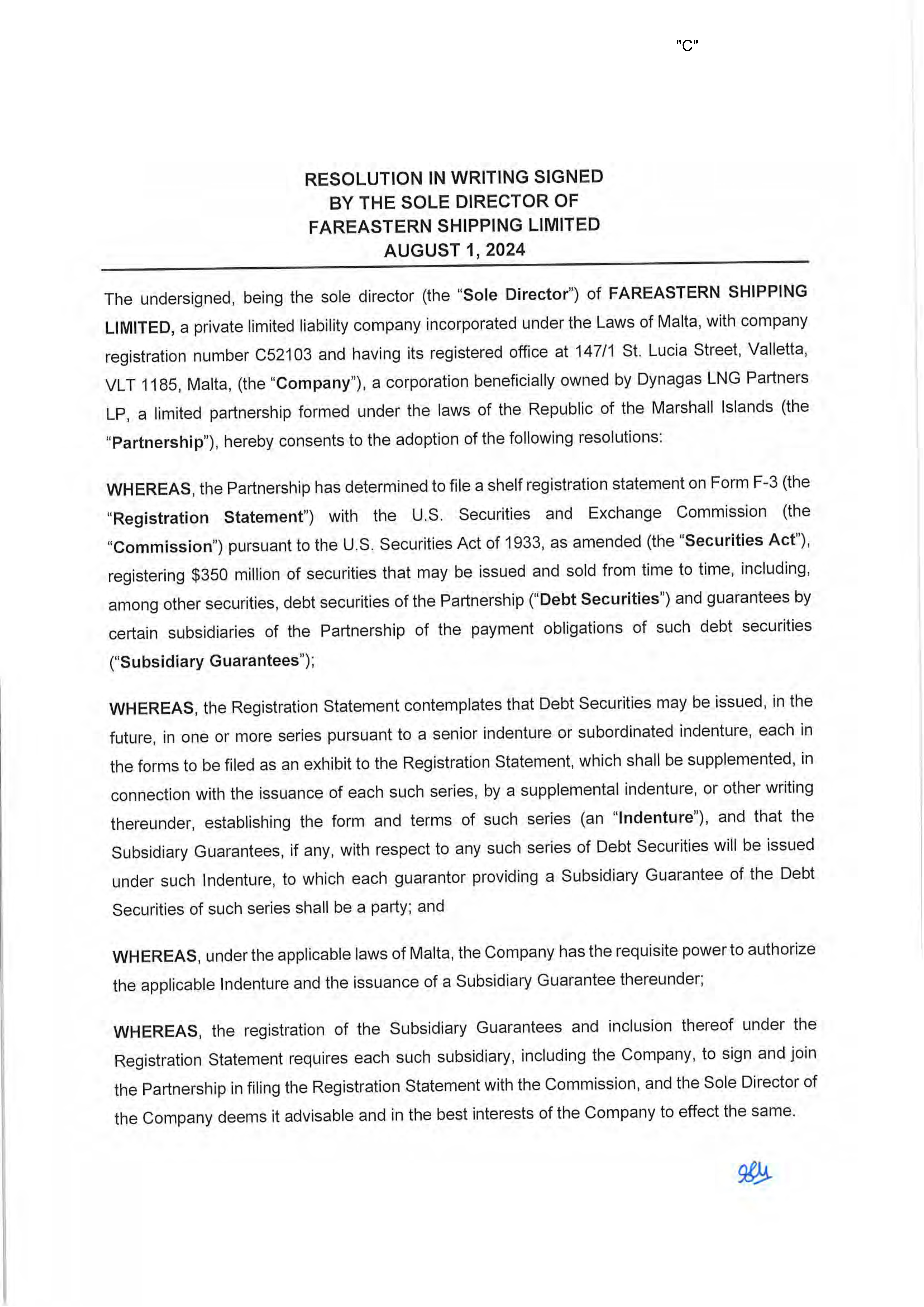 Pursuant to the requirements of the Securities Act of 1933, as amended, the undersigned, the duly authorized representative in the United States of Fareastern Shipping Limited has signed this registration statement in the City of Newark, State of Delaware on August 1, 2024.