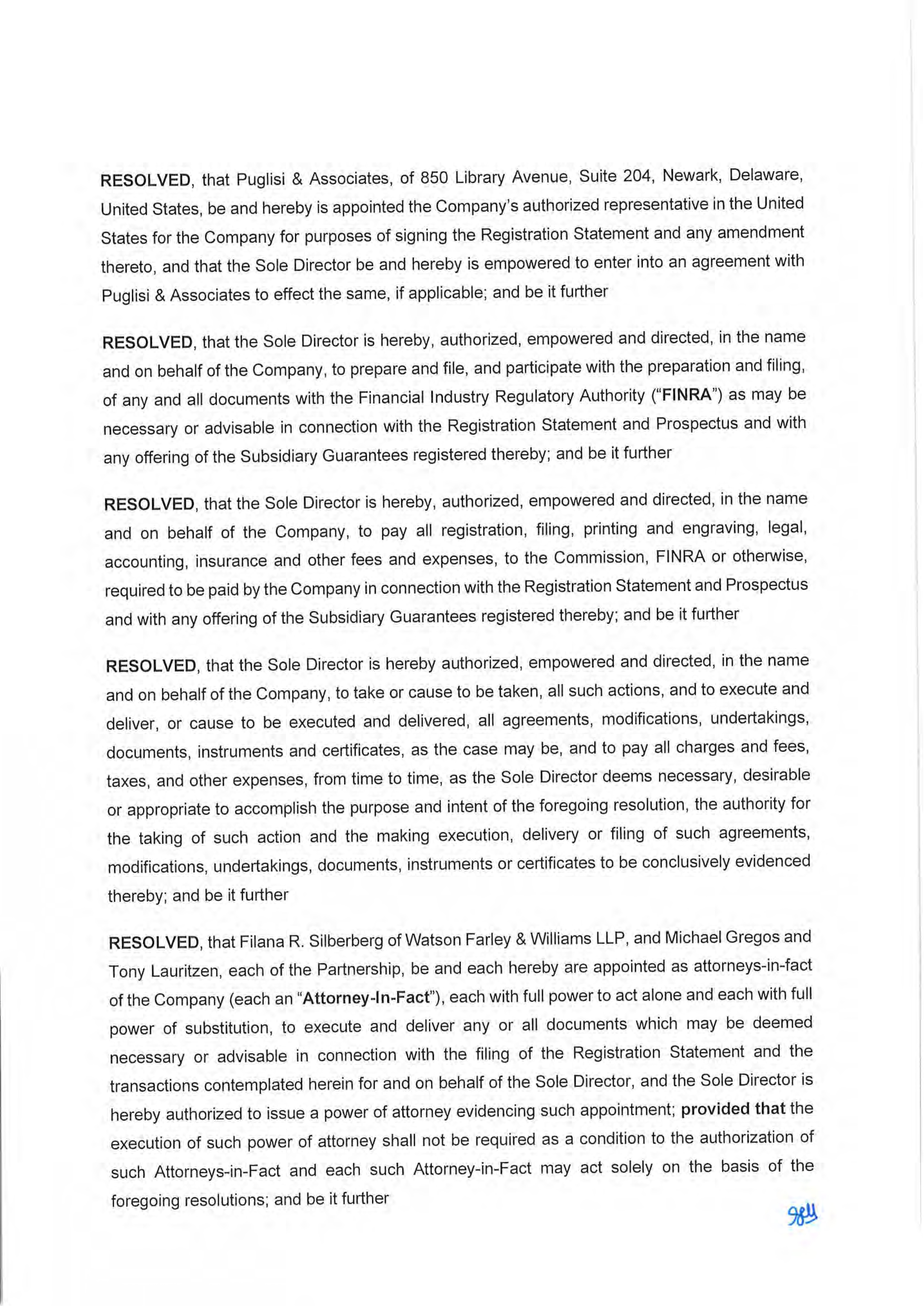 KNOW ALL MEN BY THESE PRESENTS, that each person whose signature appears below hereby constitutes and appoints Michael Gregos and Filana R. Silberberg, or any of them, with full power to act alone, his or her true and lawful attorneys-in-fact and agents, with full powers of substitution and resubstitution, for him or her and in his or her name, place and stead, in any and all capacities, to sign any and all amendments (including post-effective amendments) to this registration statement, and any registration statement (including any amendment thereto) for this offering that is to be effective upon filing pursuant to Rule 462(b) of the Securities Act of 1933, as amended, and to file the same, with all exhibits thereto, and all other documents in connection therewith, with the Securities and Exchange Commission, granting unto said attorneys-in-fact and agents full power and authority to do and perform each and every act and thing necessary to be done, as fully for all intents and purposes as he or she might or could do in person, hereby ratifying and confirming all that said attorneys-in-fact and agents, or their or his or her substitute or substitutes, may lawfully do or cause to be done by virtue hereof.