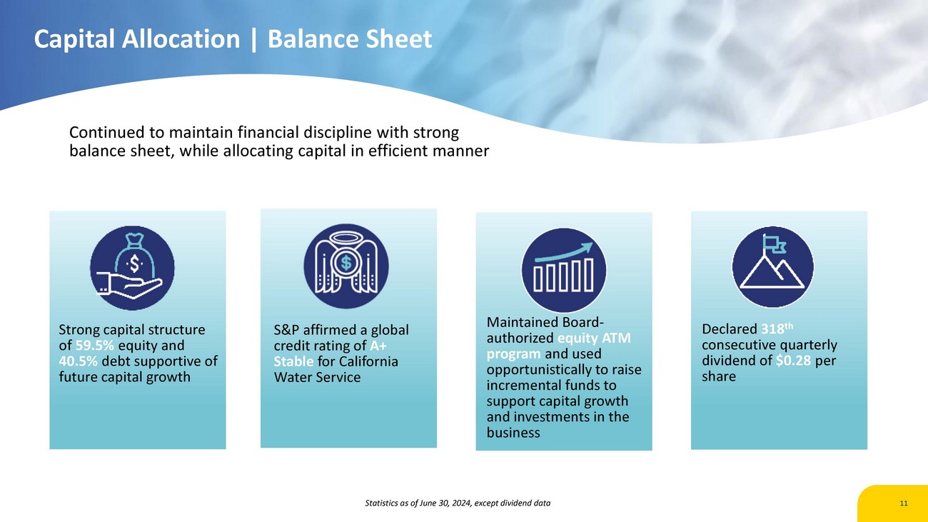 | · | $214.4 million of capital invested in water system infrastructure for the first six months of 2024. |