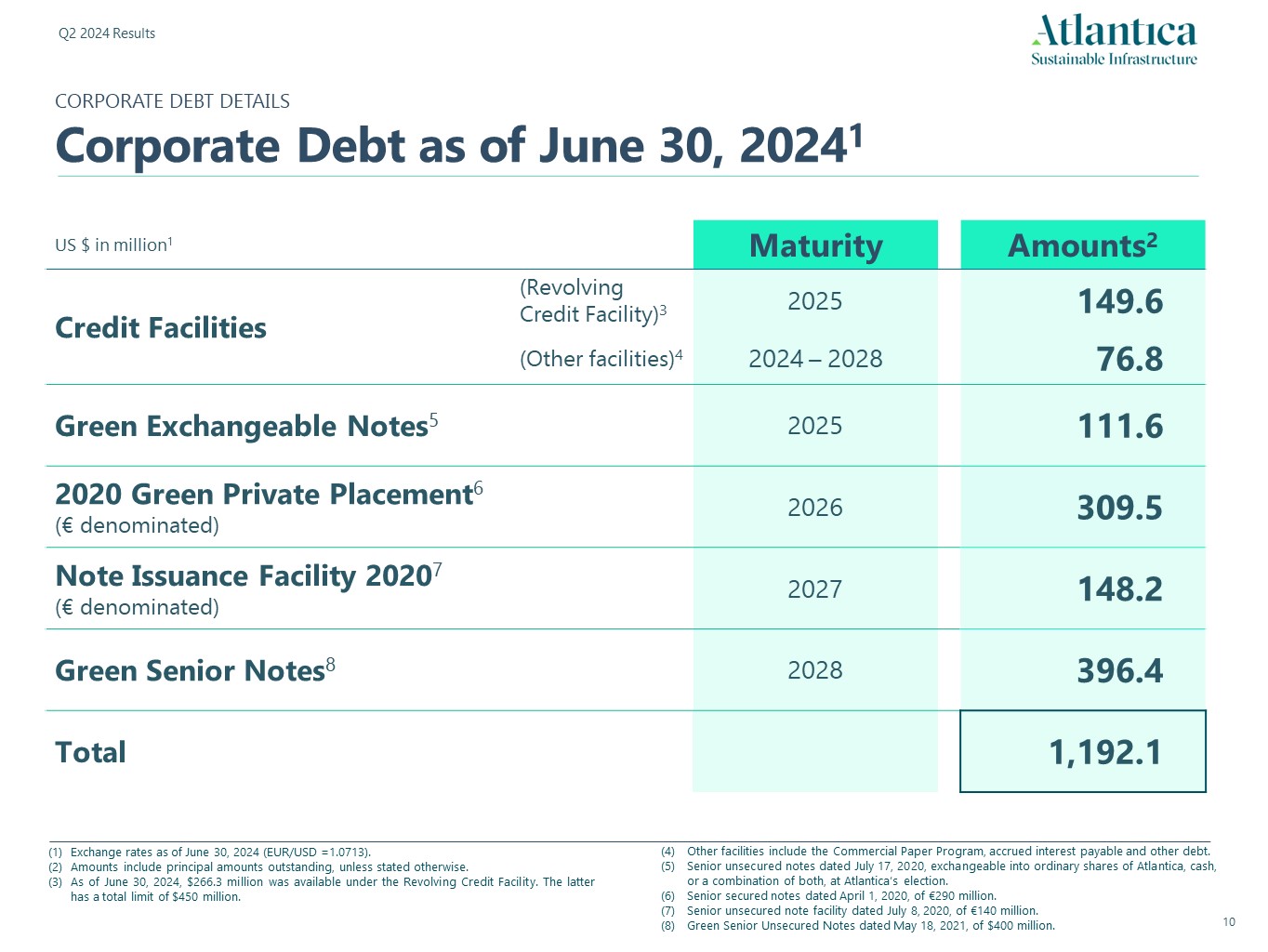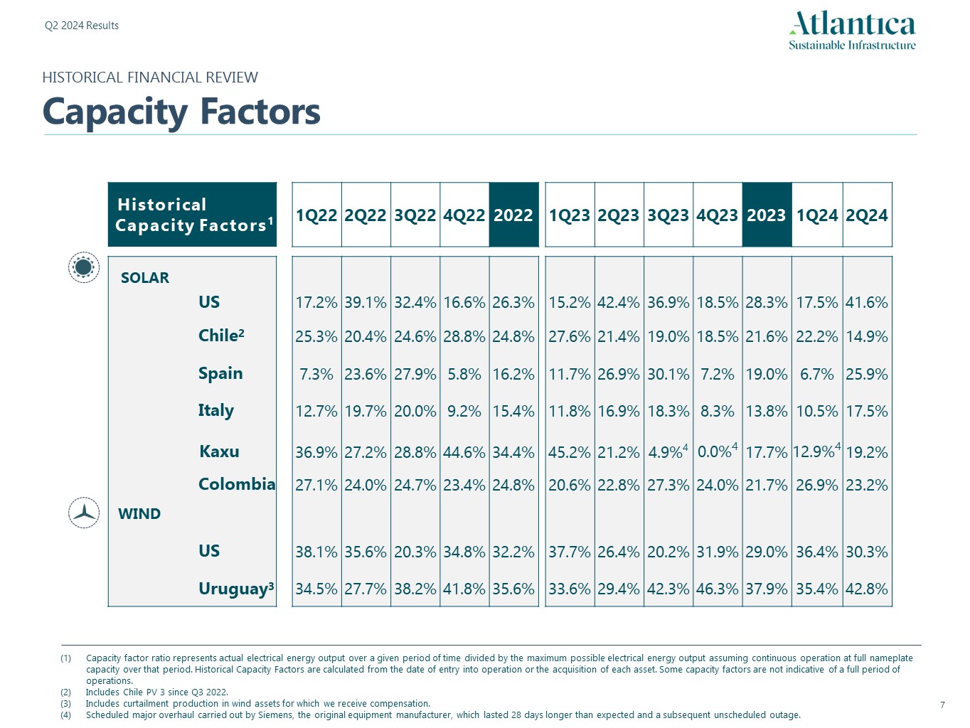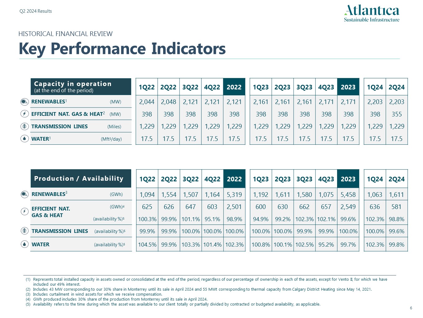 Represents total installed capacity in assets owned or consolidated for the six-month period ended June 30, 2024 and 2023, respectively, regardless of our percentage