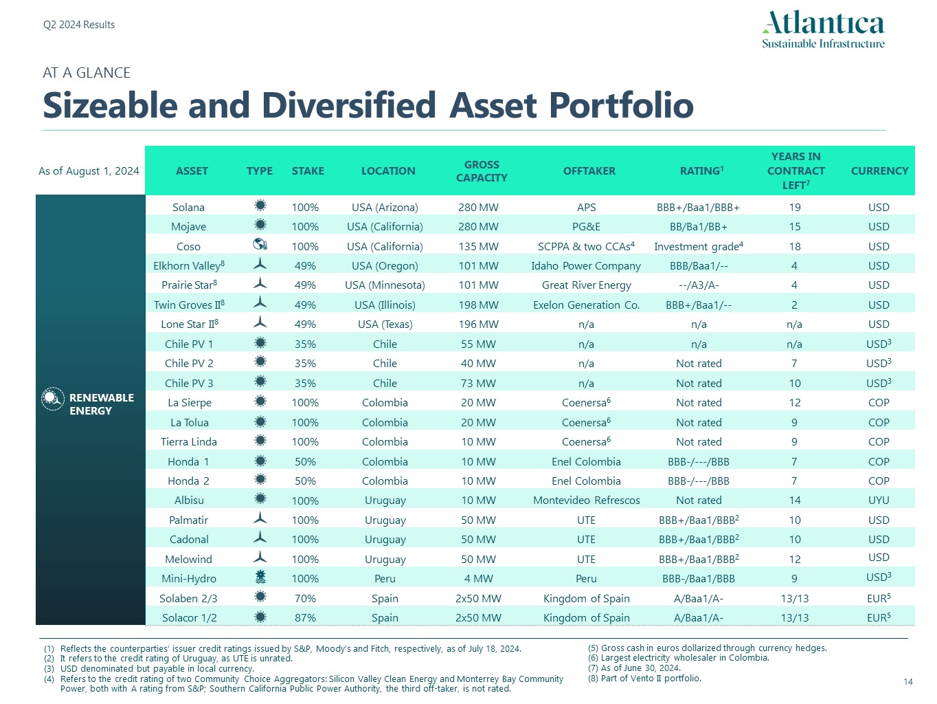 of ownership in each of the assets except for Vento II for which we have included our 49% interest.