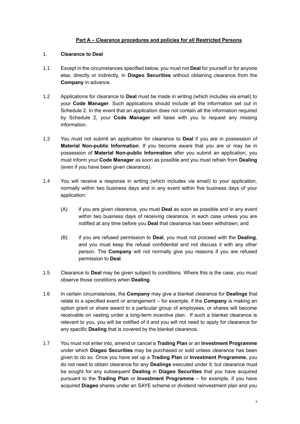 American Depositary Share (ADS) | Registered negotiable security, listed on the New York Stock Exchange, representing four Diageo plc ordinary shares of 28101/108 pence each |