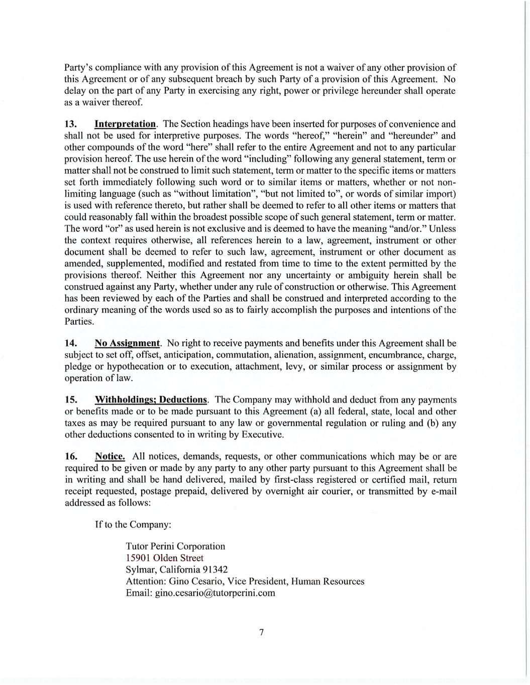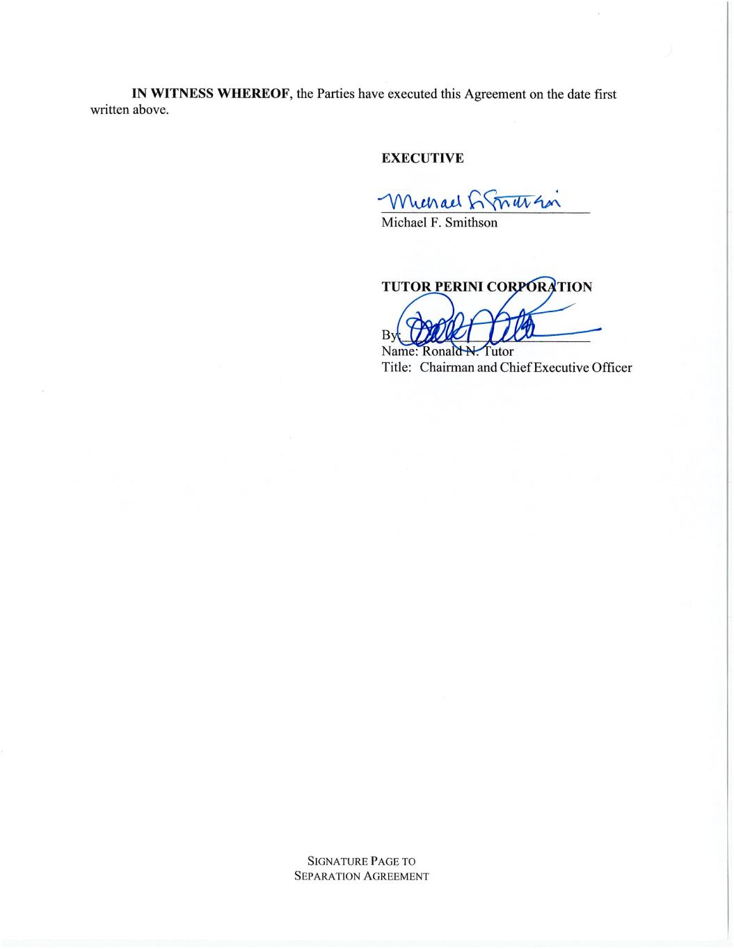 A signed original of this written statement required by Section 906 has been provided to Tutor Perini Corporation and will be retained by Tutor Perini Corporation and furnished to the Securities and Exchange Commission or its staff upon request.