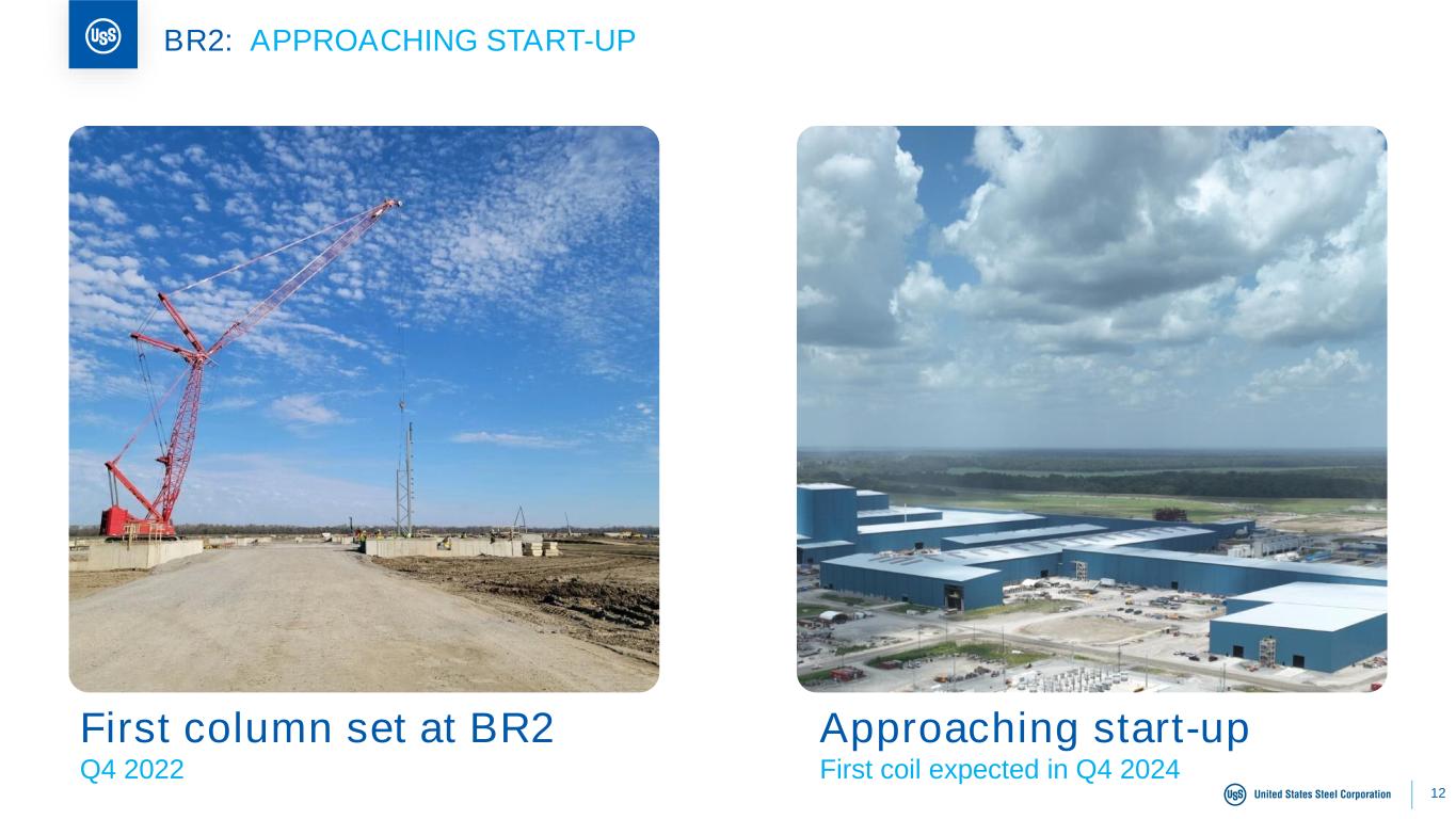 11 CGL2: STEADY PROGRESS TOWARDS RUN-RATE PRODUCTION Successful CGL2 ramp-up Progressing as-expected; commercial sales of galvanized product already achieved / galvalume coils expected later this summer On-track for value creation Tracking towards expected in-year and run-rate EBITDA contributions; $10-$15M in 2024; run-rate 2026 of $60M Applying start-up success to BR2 Implementing a similar start-up cadence to BR2 based on recent success Note: CGL = Continuous galvanizing line. CGL2 is a dual coating line with both Galvalume® and Galvanized capabilities.