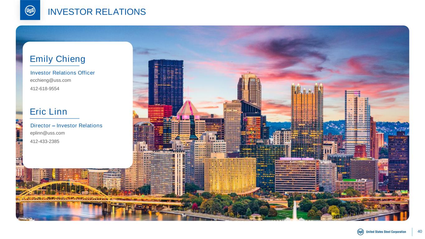 40 Emily Chieng Investor Relations Officer ecchieng@uss.com 412-618-9554 Eric Linn Director – Investor Relations eplinn@uss.com 412-433-2385 INVESTOR RELATIONS