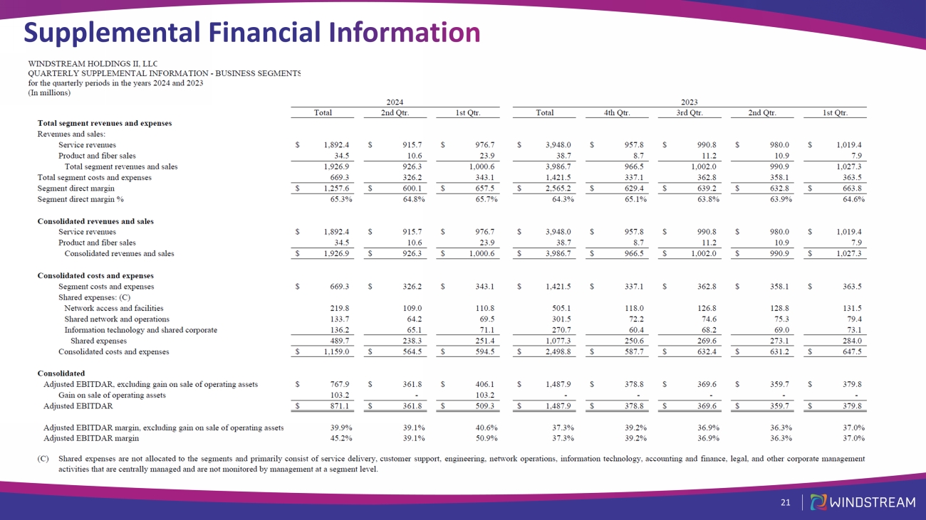 | 99.2 | Windstream presentation regarding the period ended June 30, 2024 | |