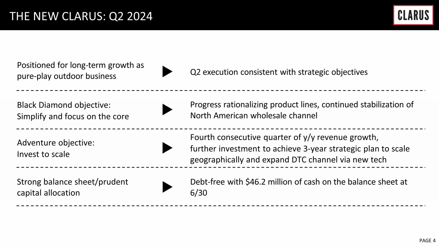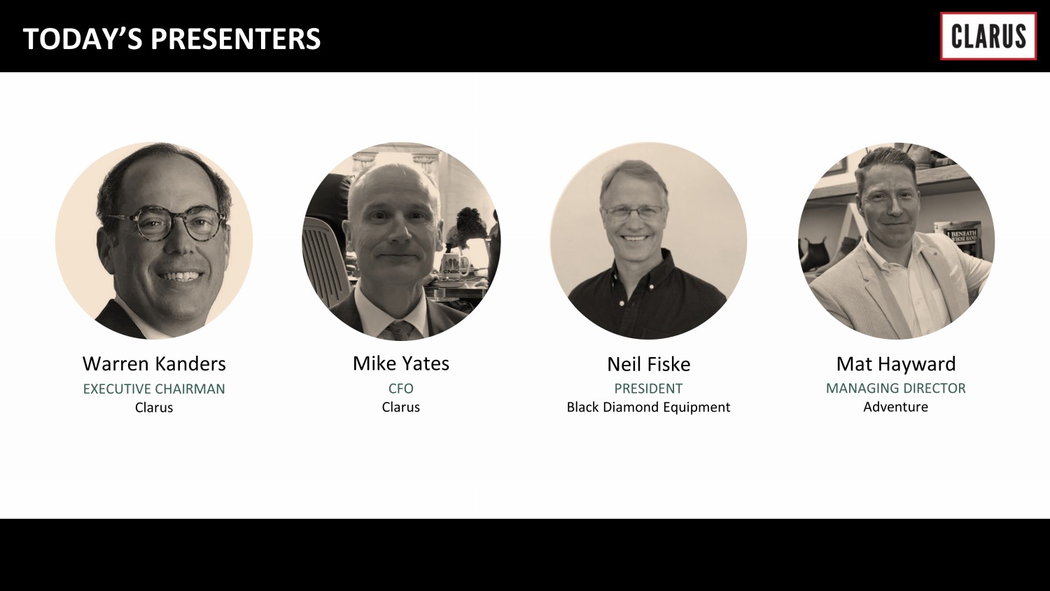 Warren Kanders EXECUTIVE CHAIRMAN Clarus TODAY’S PRESENTERS Mike Yates CFO Clarus Neil Fiske PRESIDENT Black Diamond Equipment Mat Hayward MANAGING DIRECTOR Adventure
