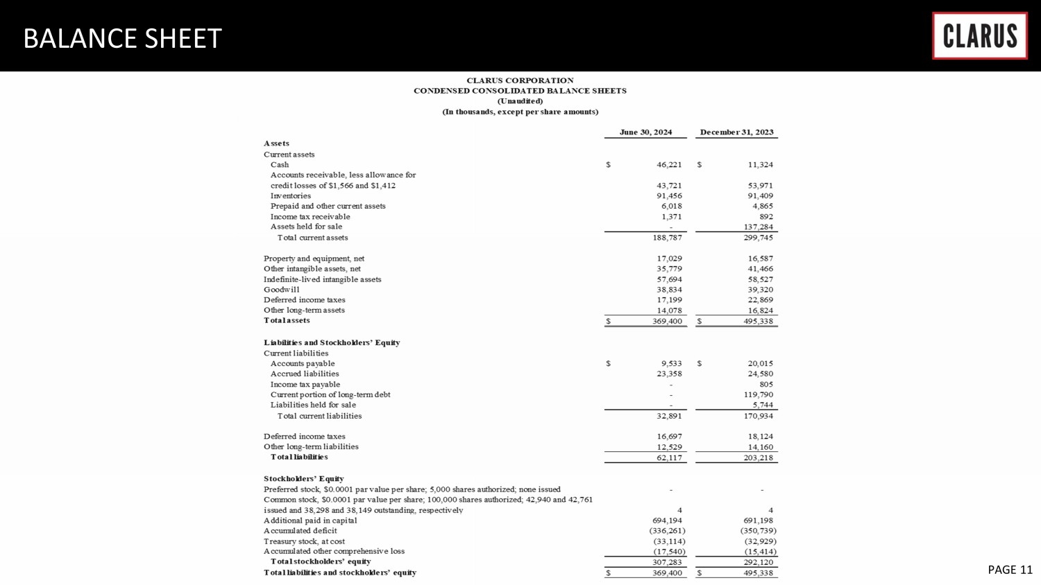 Clarus Reports Second Quarter 2024 Results