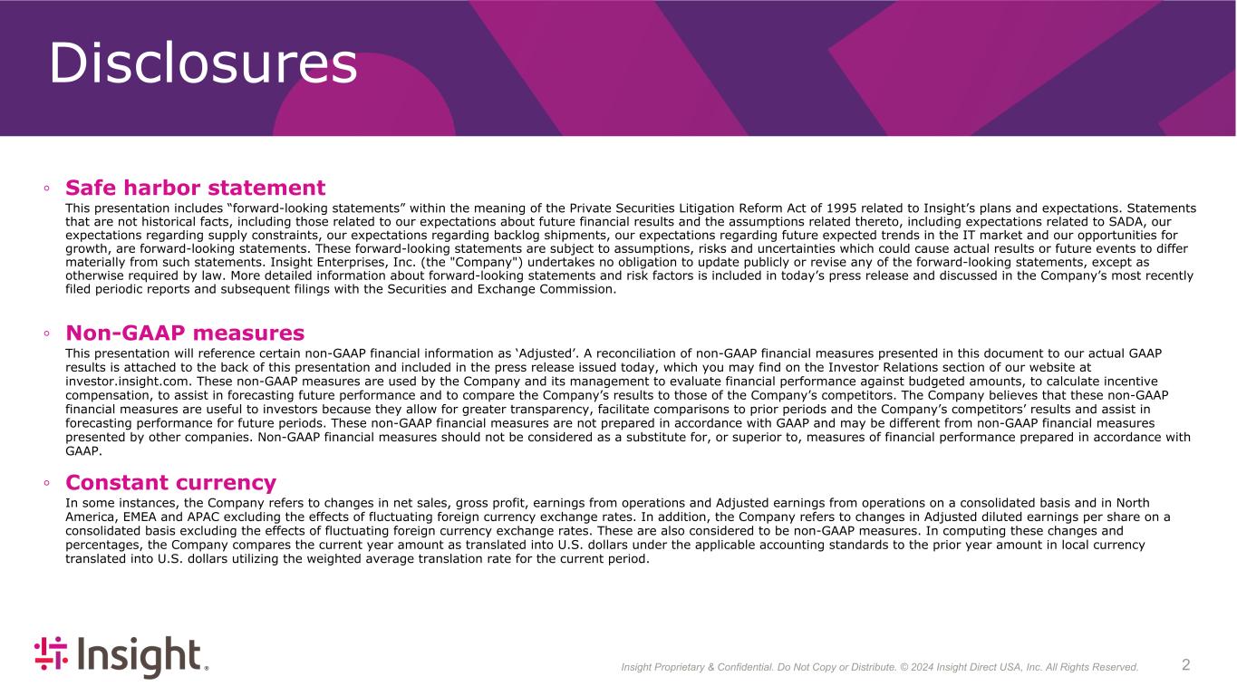 Insight Proprietary & Confidential. Do Not Copy or Distribute. © 2024 Insight Direct USA, Inc. All Rights Reserved. 1 Insight Enterprises, Inc. Second Quarter 2024 Earnings Conference Call and Webcast