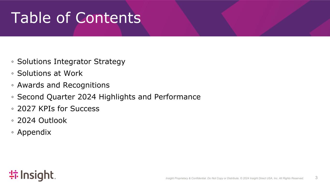 Insight Proprietary & Confidential. Do Not Copy or Distribute. © 2022 Insight Direct USA, Inc. All Rights Reserved. 34 Table of Contents ◦ Solutions Integrator Strategy ◦ Solutions at Work ◦ Awards and Recognitions ◦ Second Quarter 2024 Highlights and Performance ◦ 2027 KPIs for Success ◦ 2024 Outlook ◦ Appendix