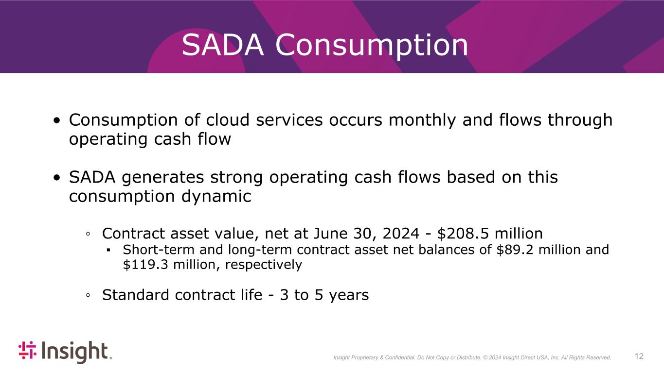 Insight Proprietary & Confidential. Do Not Copy or Distribute. © 2022 Insight Direct USA, Inc. All Rights Reserved. 124 SADA Consumption • Consumption of cloud services occurs monthly and flows through operating cash flow • SADA generates strong operating cash flows based on this consumption dynamic ◦ Contract asset value, net at June 30, 2024 - $208.5 million ▪ Short-term and long-term contract asset net balances of $89.2 million and $119.3 million, respectively ◦ Standard contract life - 3 to 5 years