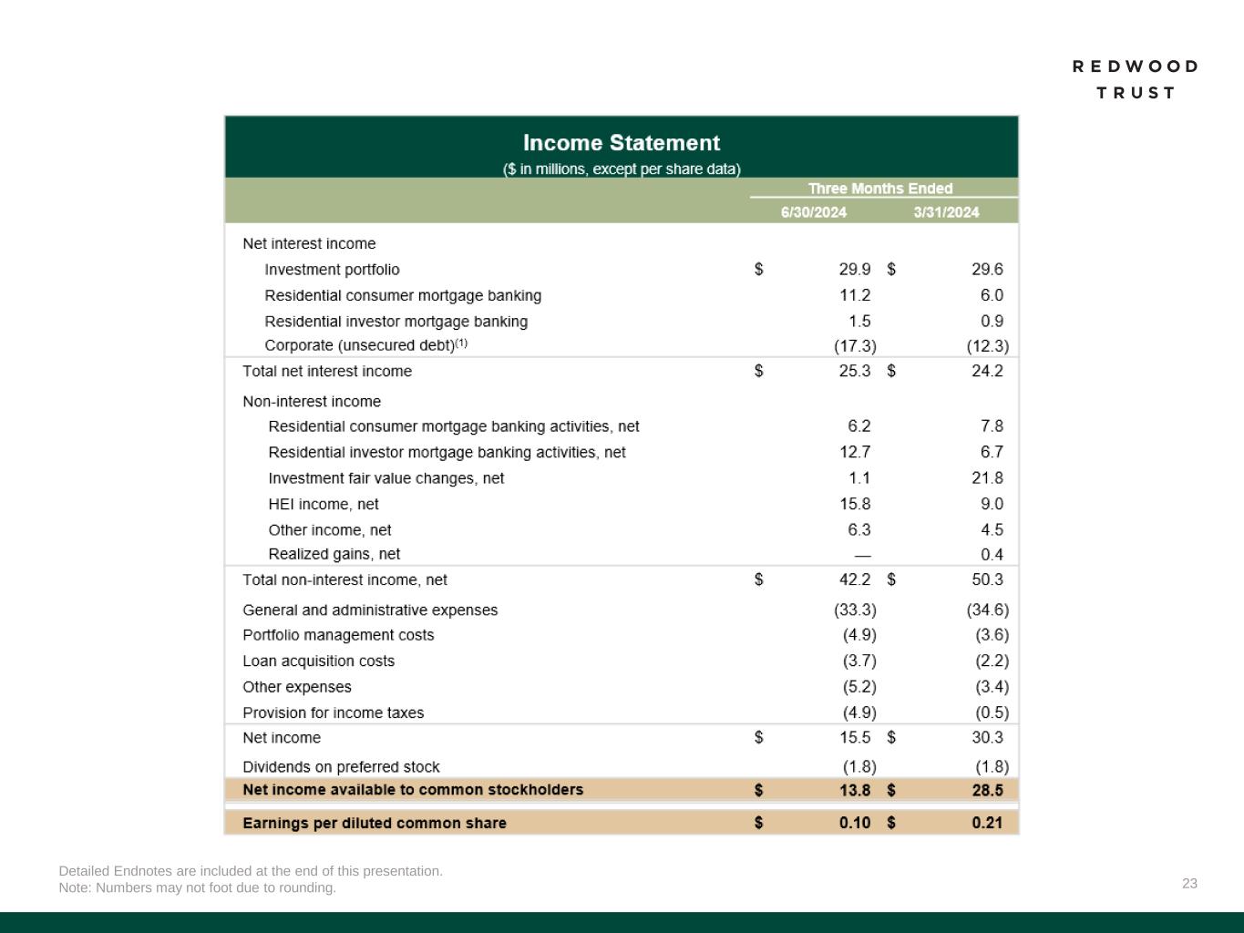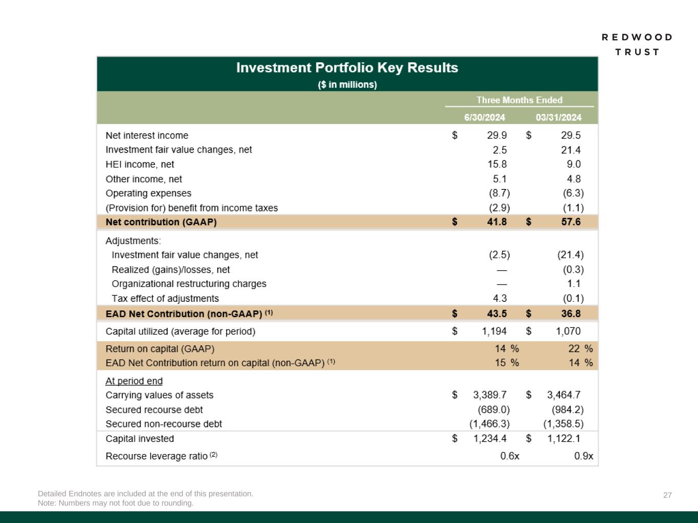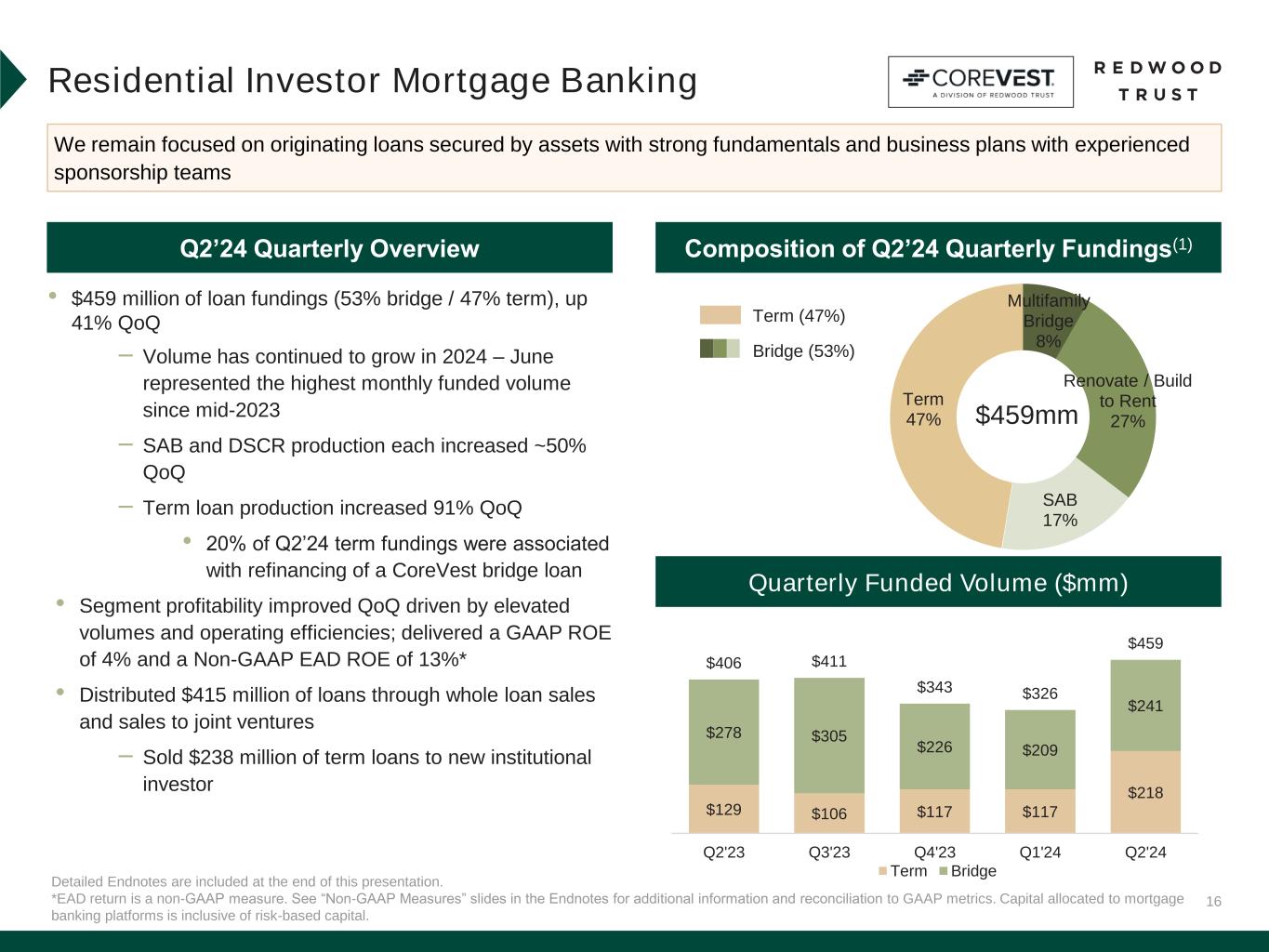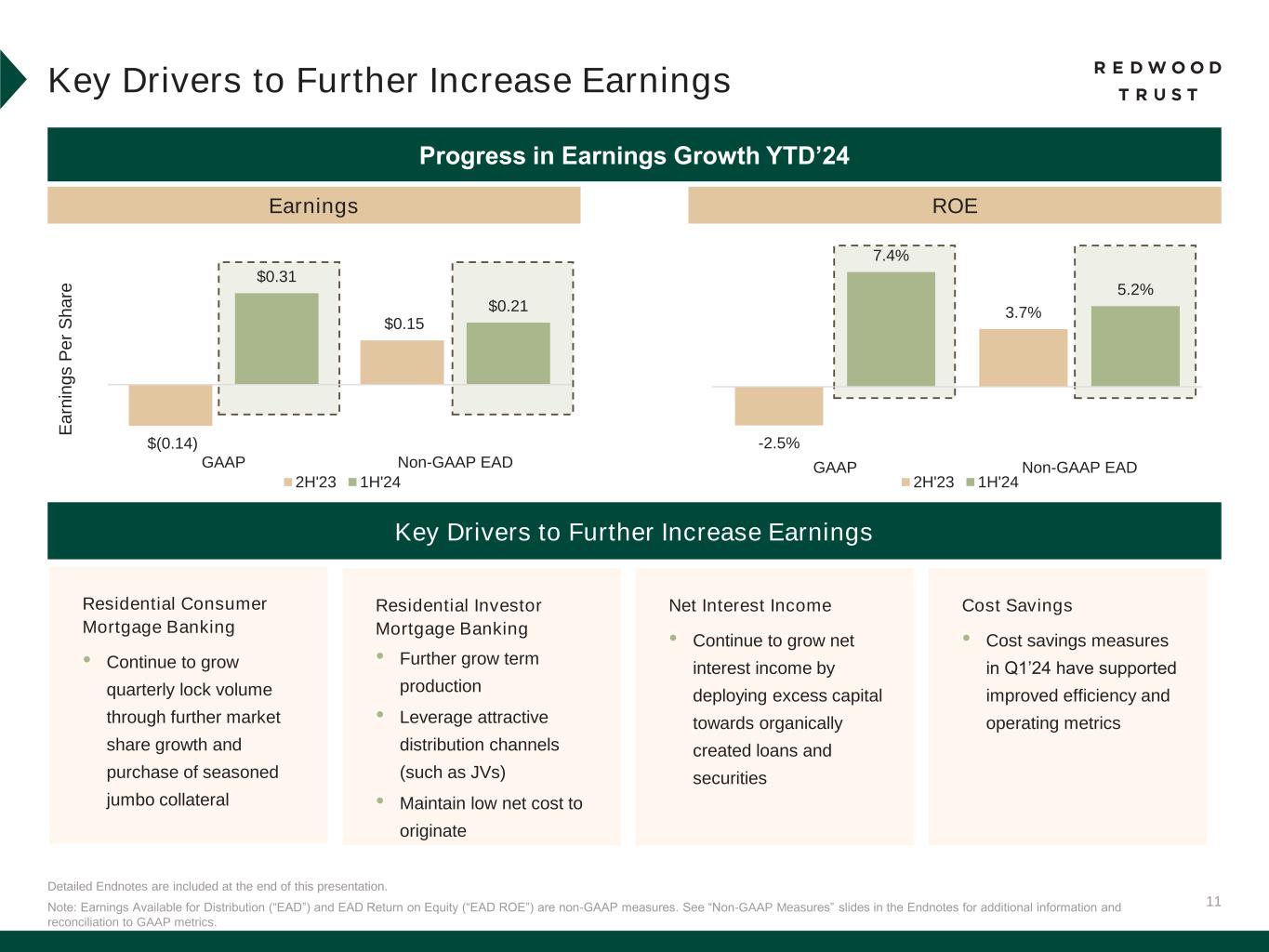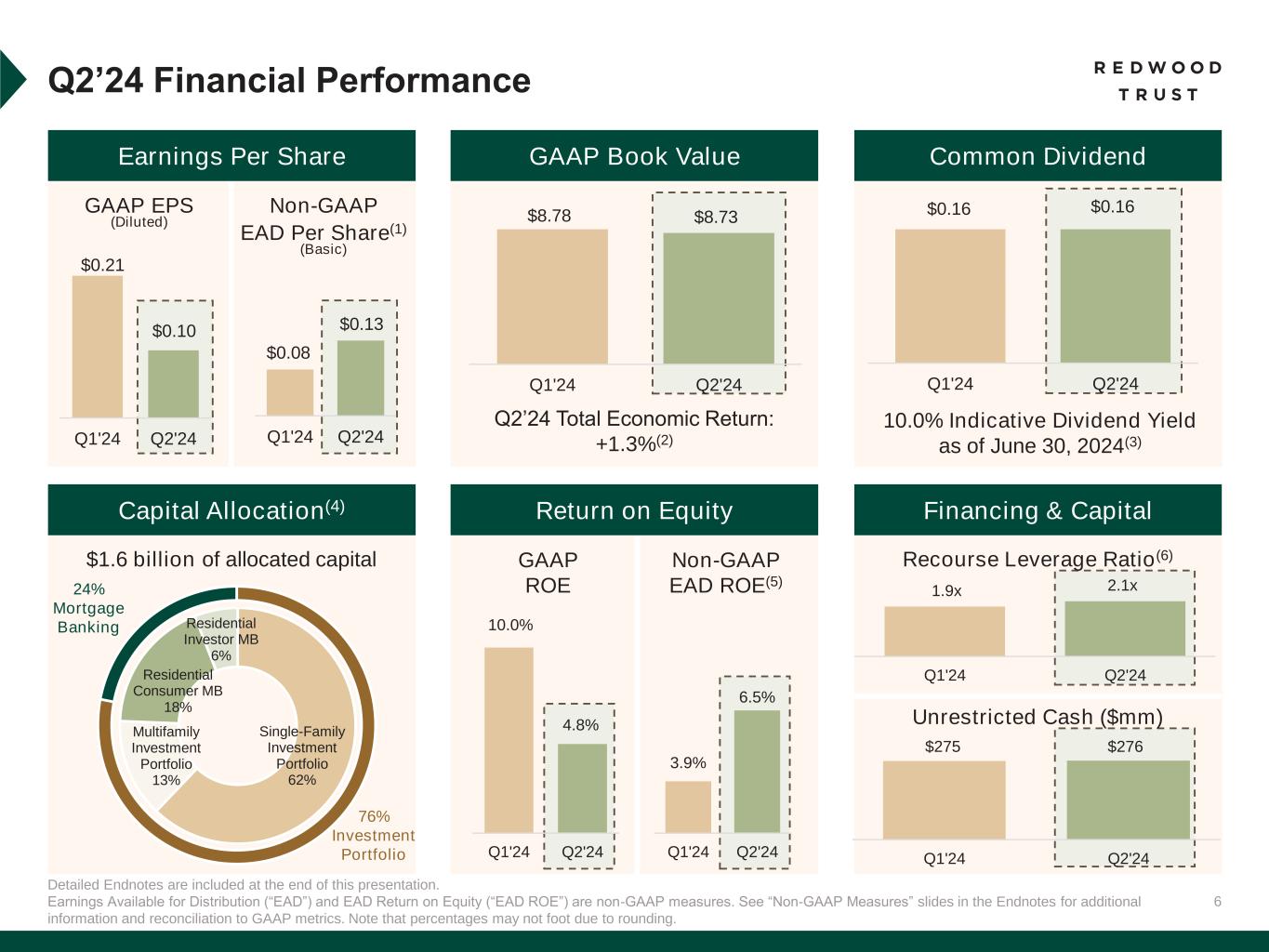1 Earnings Available for Distribution (“EAD”) is a non-GAAP measure. See “Non-GAAP Measures” slides in the Endnotes of our Q2’24 Redwood Review for additional information and reconciliation of second quarter Non-GAAP EAD per share of $0.13 to GAAP earnings per share of $0.10.