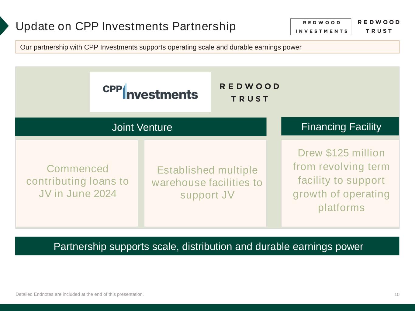 10Detailed Endnotes are included at the end of this presentation. Update on CPP Investments Partnership Our partnership with CPP Investments supports operating scale and durable earnings power Drew $125 million from revolving term facility to support growth of operating platforms Joint Venture Financing Facility Partnership supports scale, distribution and durable earnings power Commenced contributing loans to JV in June 2024 Established multiple warehouse facilities to support JV