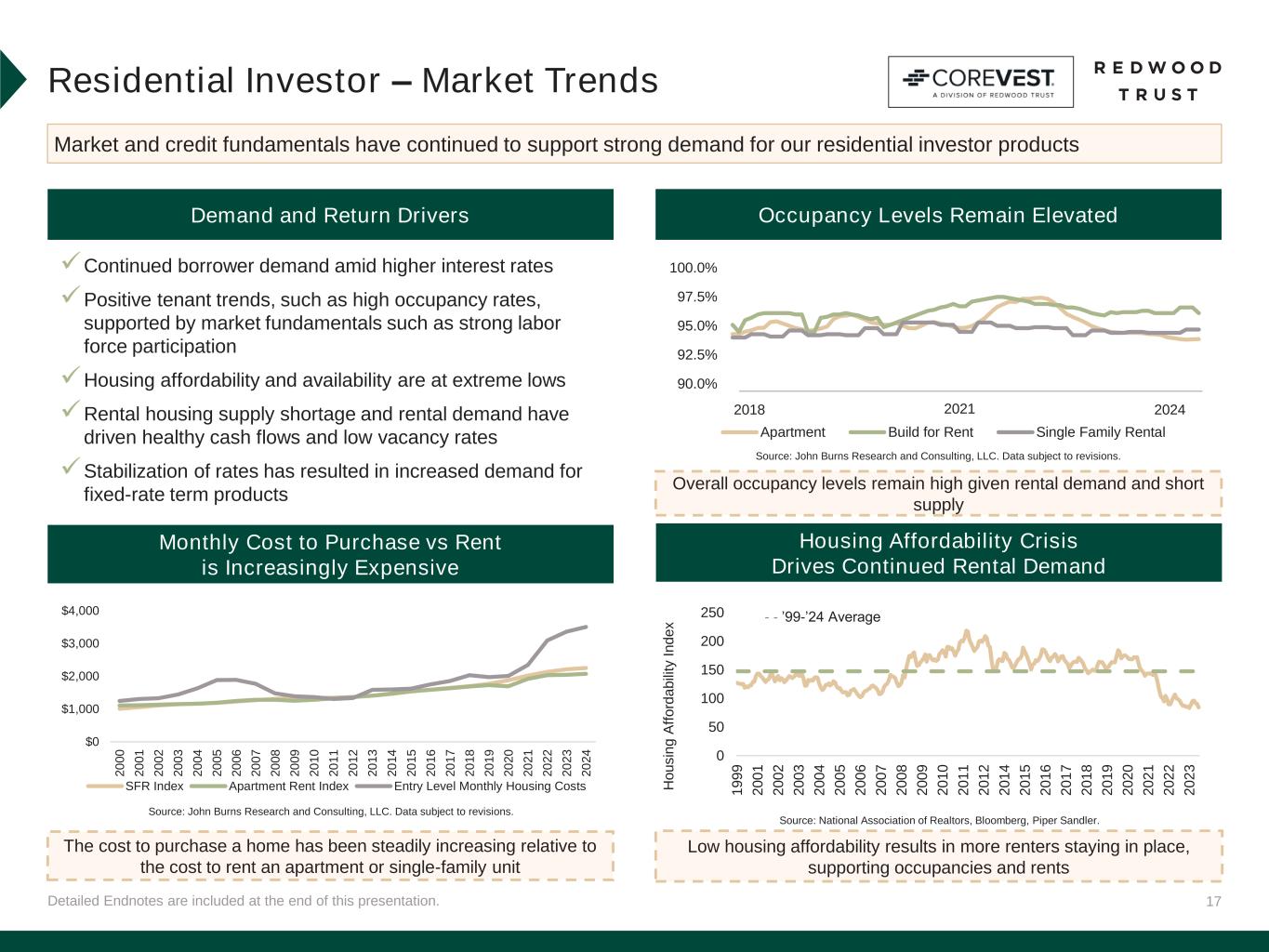 17Detailed Endnotes are included at the end of this presentation. Residential Investor – Market Trends Market and credit fundamentals have continued to support strong demand for our residential investor products Demand and Return Drivers Housing Affordability Crisis Drives Continued Rental Demand Occupancy Levels Remain Elevated Monthly Cost to Purchase vs Rent is Increasingly Expensive Overall occupancy levels remain high given rental demand and short supply Low housing affordability results in more renters staying in place, supporting occupancies and rents The cost to purchase a home has been steadily increasing relative to the cost to rent an apartment or single-family unit H o u s in g A ff o rd a b ili ty I n d e x Source: John Burns Research and Consulting, LLC. Data subject to revisions. Source: National Association of Realtors, Bloomberg, Piper Sandler. ✓Continued borrower demand amid higher interest rates ✓Positive tenant trends, such as high occupancy rates, supported by market fundamentals such as strong labor force participation ✓Housing affordability and availability are at extreme lows ✓Rental housing supply shortage and rental demand have driven healthy cash flows and low vacancy rates ✓Stabilization of rates has resulted in increased demand for fixed-rate term products 90.0% 92.5% 95.0% 97.5% 100.0% Apartment Build for Rent Single Family Rental 2018 20242021 $0 $1,000 $2,000 $3,000 $4,000 2 0 0 0 2 0 0 1 2 0 0 2 2 0 0 3 2 0 0 4 2 0 0 5 2 0 0 6 2 0 0 7 2 0 0 8 2 0 0 9 2 0 1 0 2 0 1 1 2 0 1 2 2 0 1 3 2 0 1 4 2 0 1 5 2 0 1 6 2 0 1 7 2 0 1 8 2 0 1 9 2 0 2 0 2 0 2 1 2 0 2 2 2 0 2 3 2 0 2 4 SFR Index Apartment Rent Index Entry Level Monthly Housing Costs Source: John Burns Research and Consulting, LLC. Data subject to revisions. 0 50 100 150 200 250 1 9 9 9 2 0 0 1 2 0 0 2 2 0 0 3 2 0 0 4 2 0 0 5 2 0 0 6 2 0 0 7 2 0 0 8 2 0 0 9 2 0 1 0 2 0 1 1 2 0 1 2 2 0 1 4 2 0 1 5 2 0 1 6 2 0 1 7 2 0 1 8 2 0 1 9 2 0 2 0 2 0 2 1 2 0 2 2 2 0 2 3 - - ’99-’24 Average