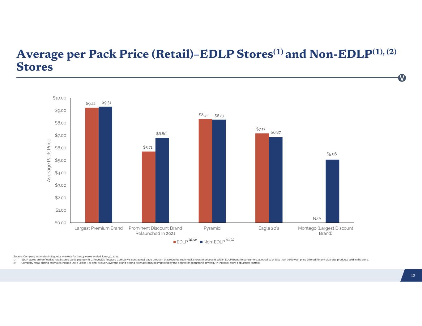 Wholesale List Price Increases - 2021 - 2024 11 Brands Liggett Select, Eve and Grand PrixPyramidEagle 20'sMontegoActionEffective Date Amount per pack 2021 $ 0.14$ 0.14$ 0.14$ -List Price increaseJanuary 25, 2021 0.140.140.14-List Price increaseJune 28, 2021 0.150.150.15-List Price increaseSeptember 27, 2021 2022 $ 0.15$ 0.15$ 0.15$ 0.10List Price increaseJanuary 31, 2022 0.160.160.16-List Price increaseApril 29, 2022 ---0.10Promotional spending reductionMay 1, 2022 0.160.160.160.16List Price increaseJuly 29, 2022 0.160.160.160.10List Price increase October 28, 2022 2023 $ 0.16$ 0.16$ 0.16$ 0.10List Price increaseJanuary 27, 2023 0.200.160.160.16List Price increaseApril 28, 2023 0.200.160.160.10List Price IncreaseAugust 25, 2023 2024 $ 0.30$ 0.17$ 0.17$ 0.14List Price increaseJanuary 26, 2024 0.300.17.0170.12List Price increaseApril 26, 2024