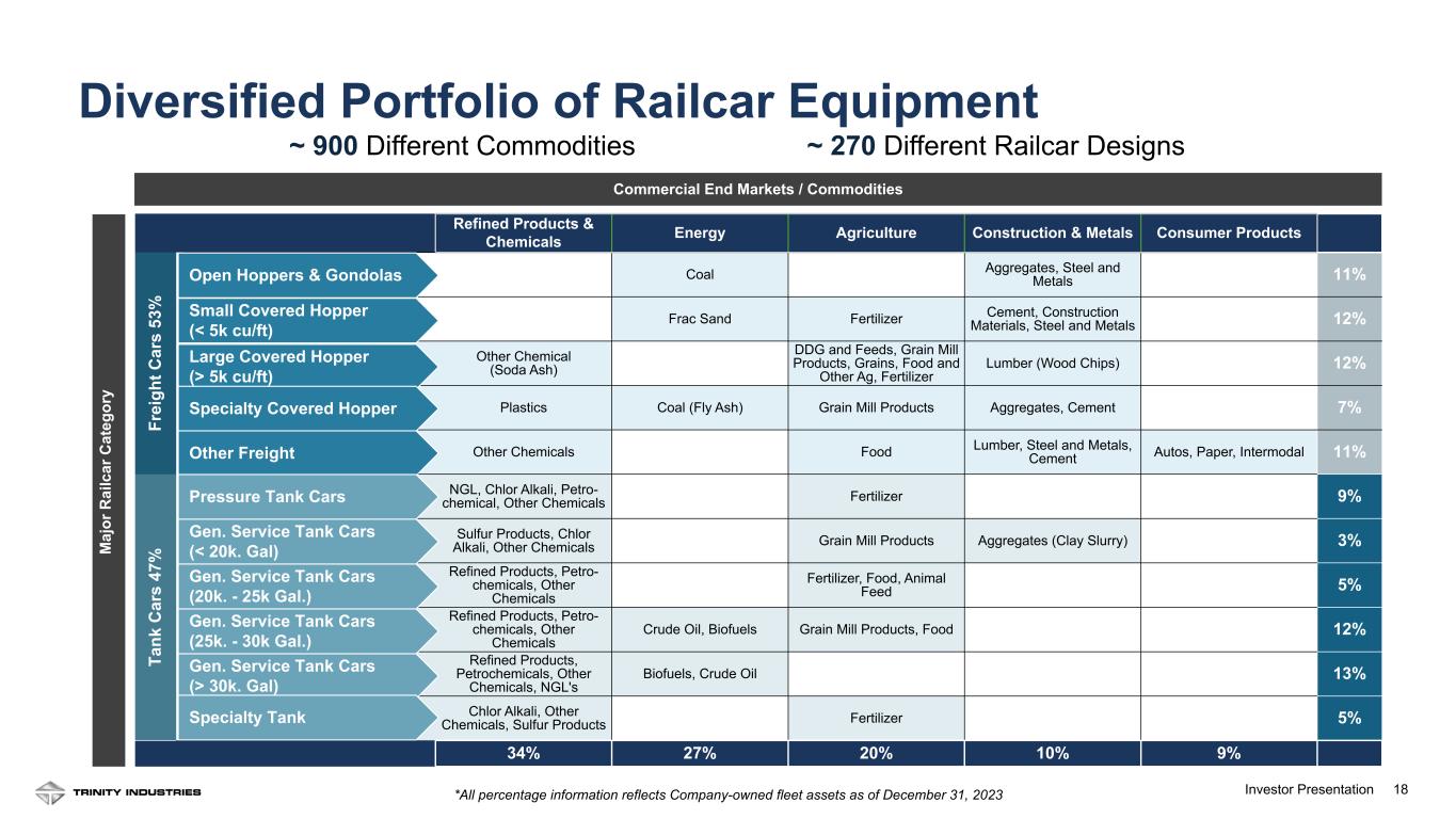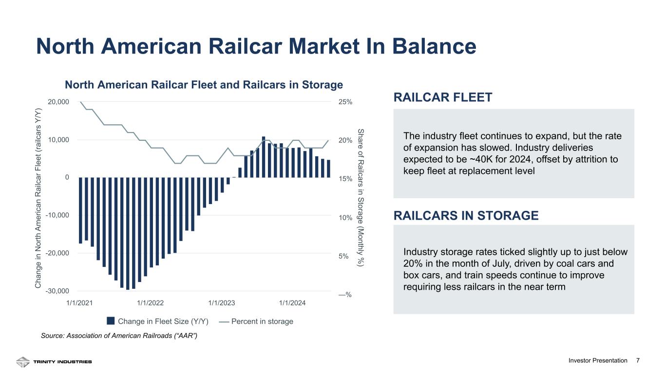 We expect industry deliveries of around 40,000 railcars in 2024 and 120,000 railcars over the next three years. The builders, including Trinity, are demonstrating great market discipline, to keep the industry fleet well-utilized and diversified. The railcar build cycle is expected to be less volatile than prior cycles with lower peaks and higher floors.