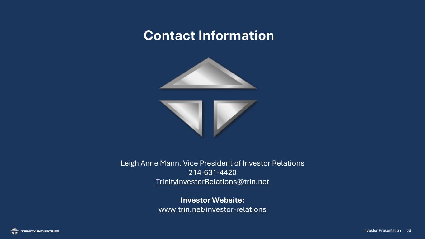 36Investor Presentation Leigh Anne Mann, Vice President of Investor Relations 214-631-4420 TrinityInvestorRelations@trin.net Investor Website: www.trin.net/investor-relations Contact Information