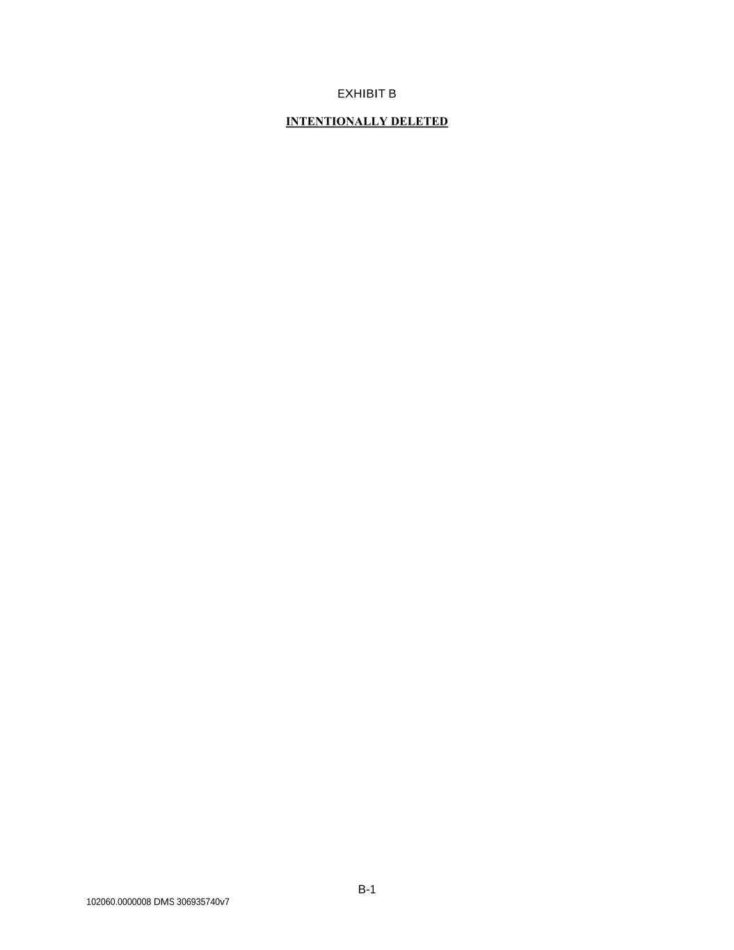 B-1 102060.0000008 DMS 306935740v7 EXHIBIT B INTENTIONALLY DELETED