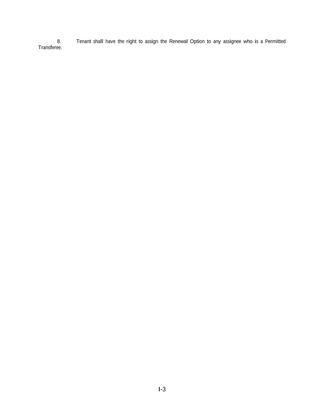 I-3 8. Tenant shall have the right to assign the Renewal Option to any assignee who is a Permitted Transferee.
