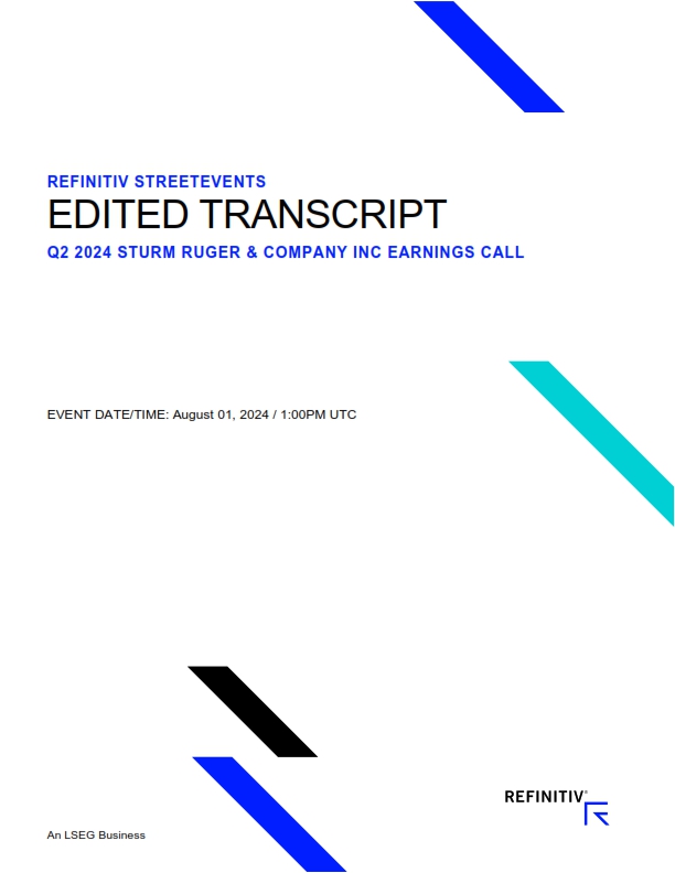| August 01, 2024 / 1:00PM UTC, Q2 2024 Sturm Ruger & Company Inc Earnings Call |
