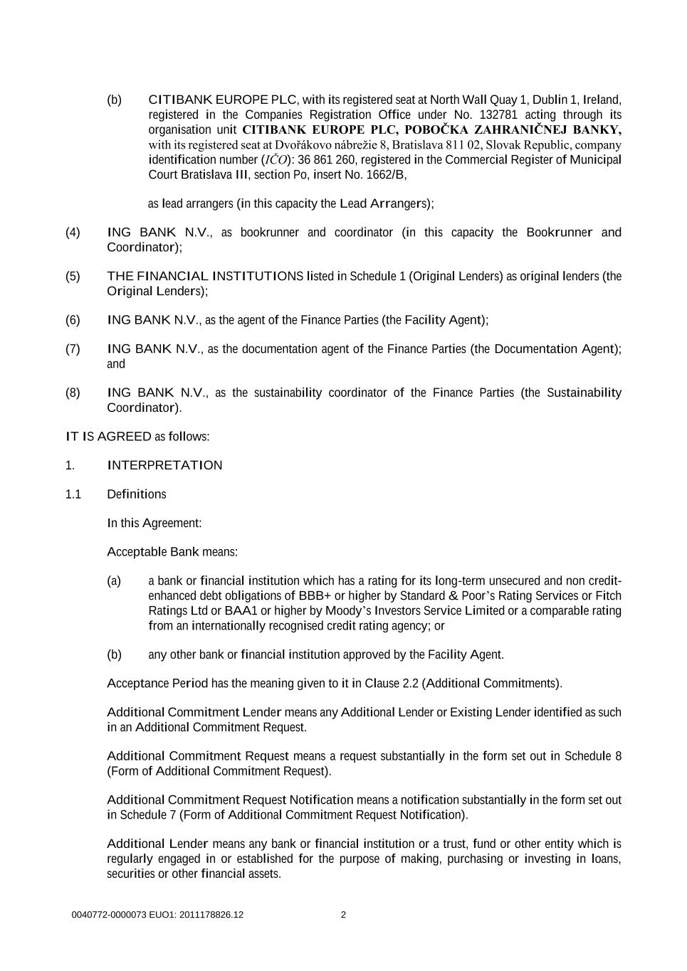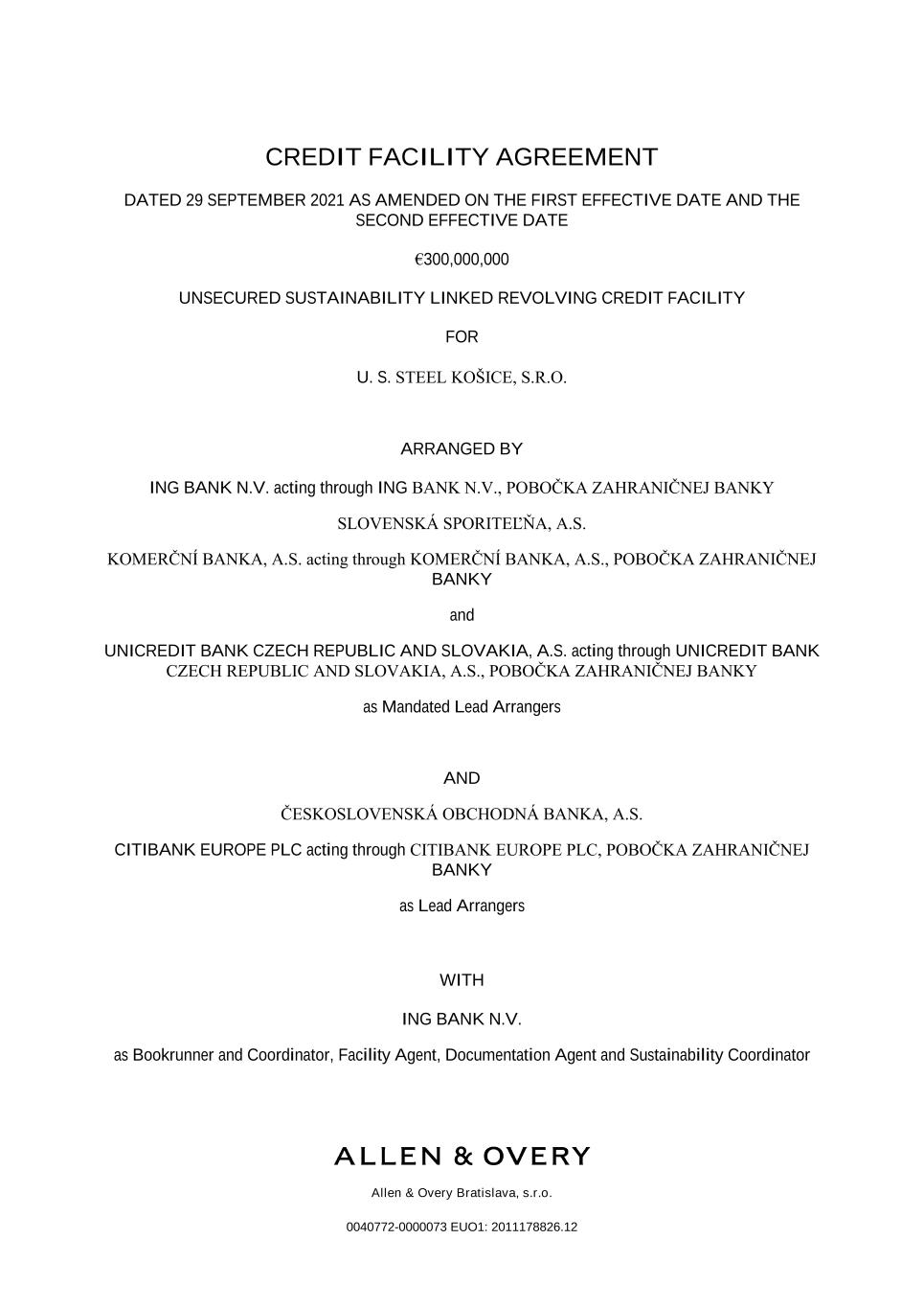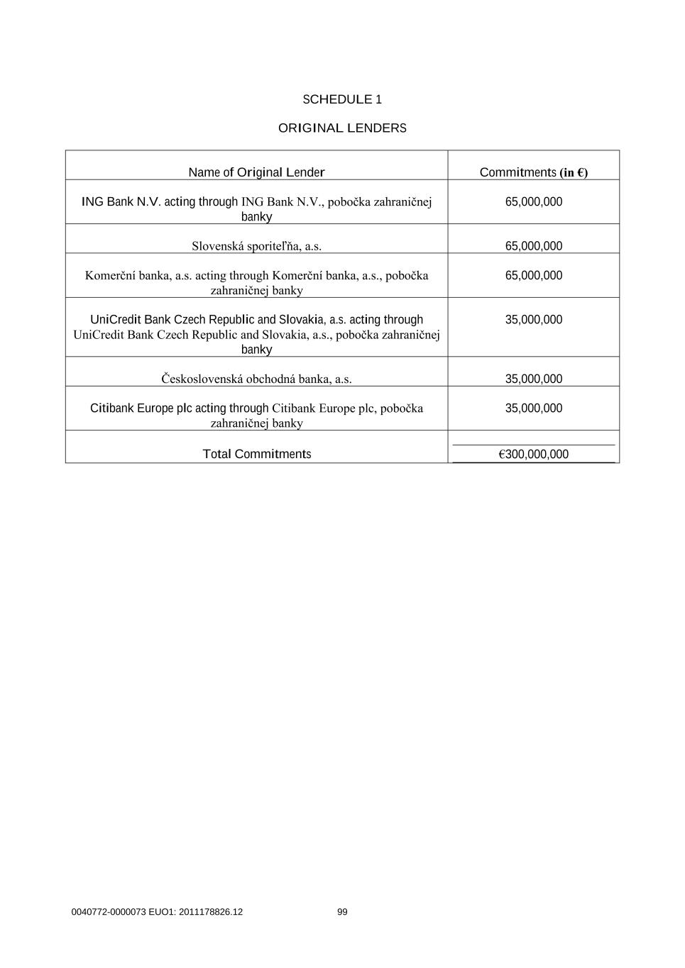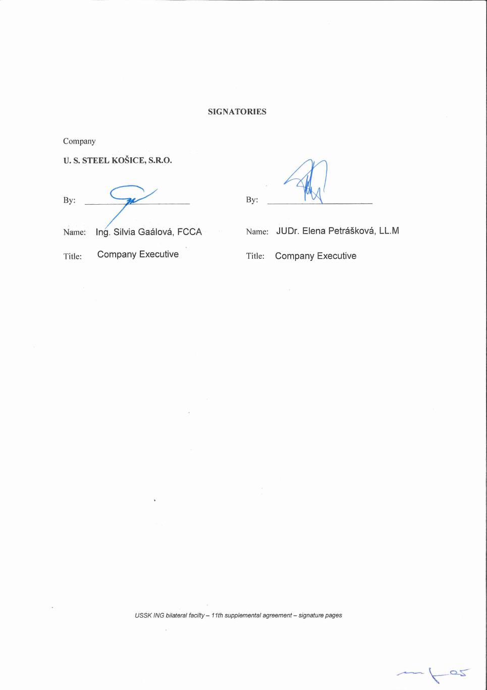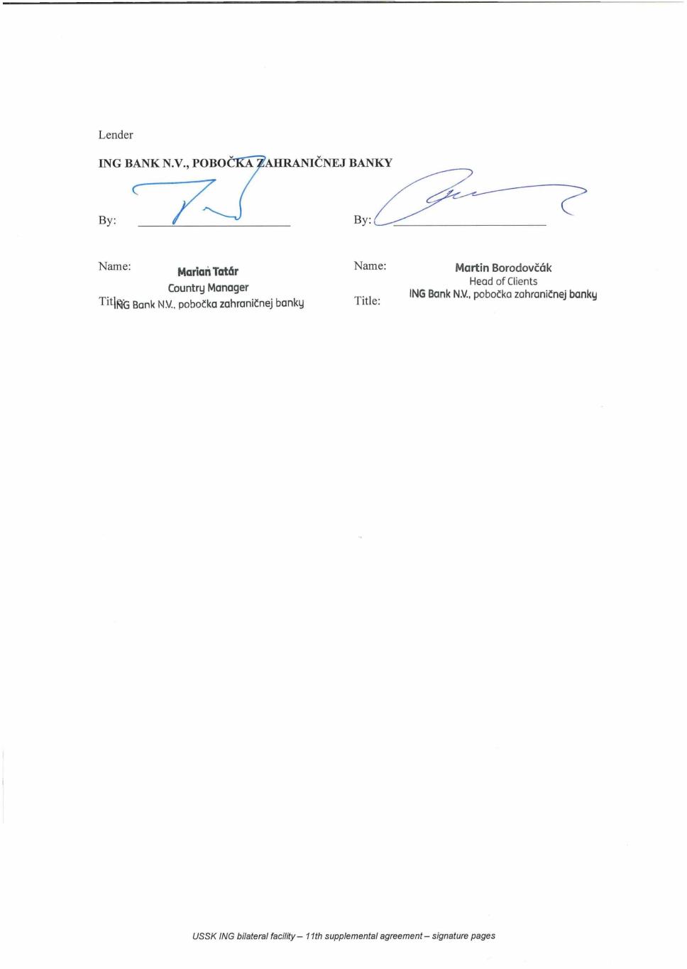 Lender ING BANK N.V., POBOCRAZ'AHRANICNEJ BANKY Name: Mariah Totfir Country Manager TitlRG Bank NV., poboCka zahraniCnej banky Name: Martin Borodovcdk Head of Clients Tjtle. ING Bank NV, pobocka zahraniCnej banky USSK ING bilateral facility - 11th supplemental agreement- signature pages