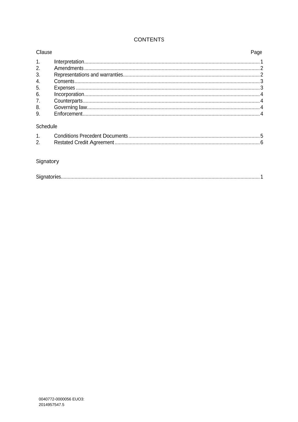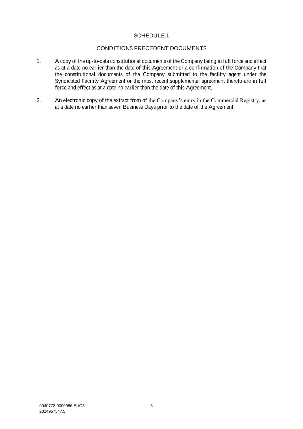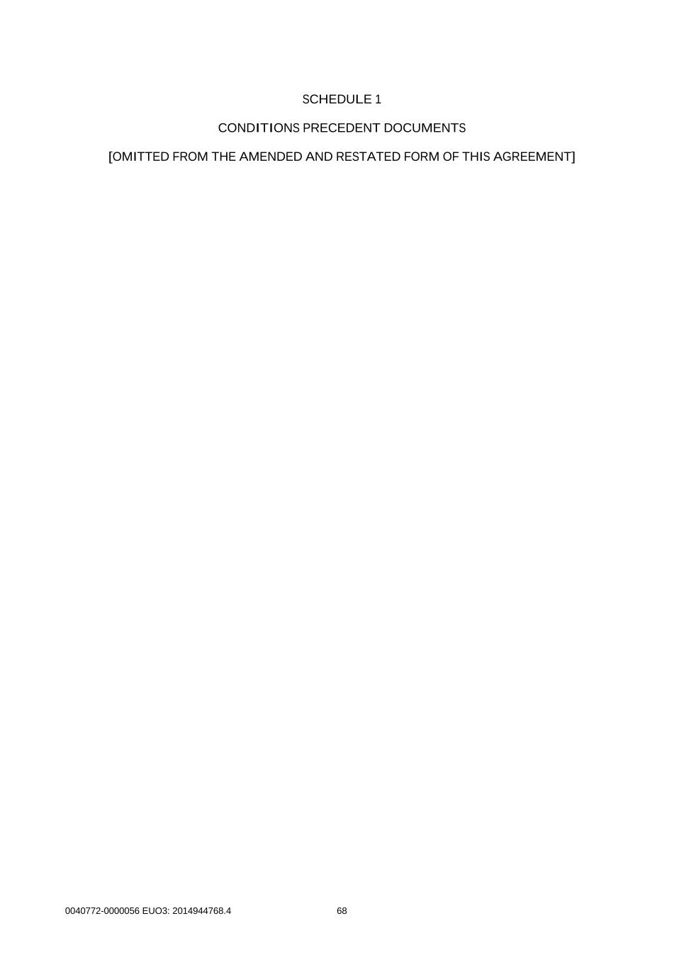0040772-0000056 EUO3: 2014944768.4 68 SCHEDULE 1 CONDITIONS PRECEDENT DOCUMENTS [OMITTED FROM THE AMENDED AND RESTATED FORM OF THIS AGREEMENT]