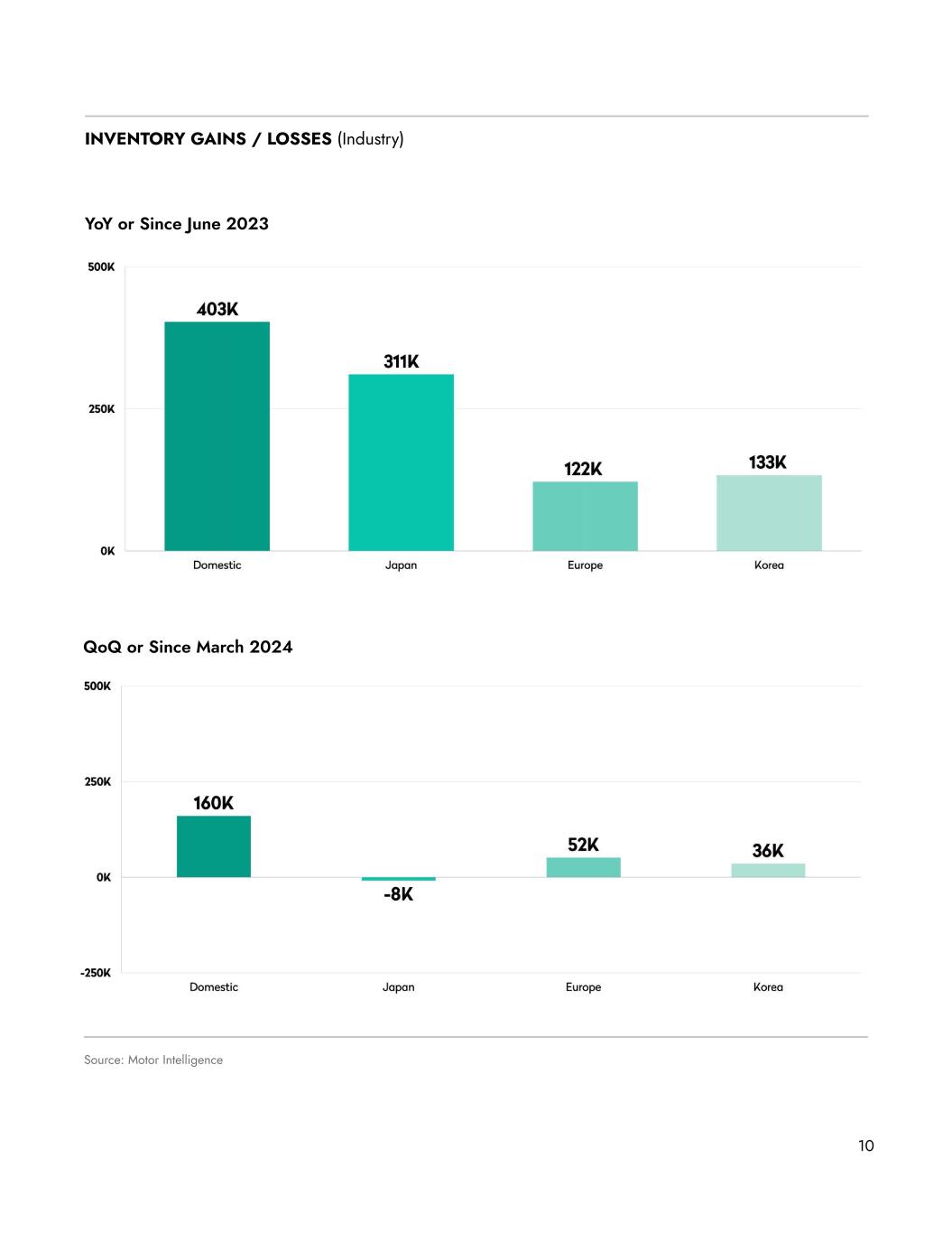 10 INVENTORY GAINS / LOSSES (Industry) Source: Motor Intelligence YoY or Since June 2023 QoQ or Since March 2024