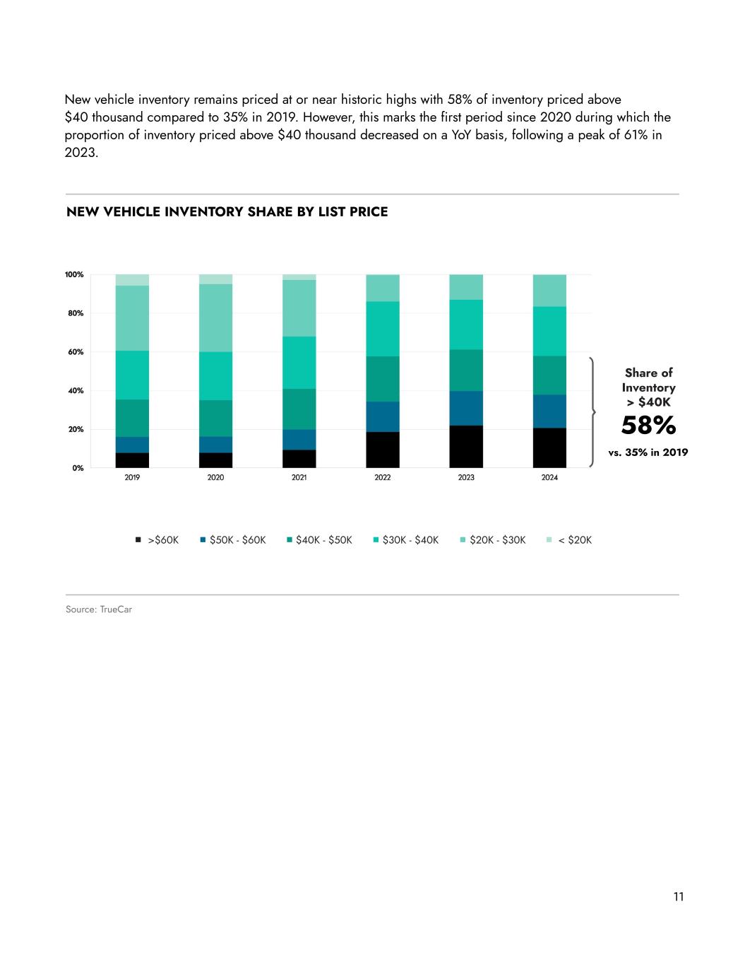 11 New vehicle inventory remains priced at or near historic highs with 58% of inventory priced above $40 thousand compared to 35% in 2019. However, this marks the first period since 2020 during which the proportion of inventory priced above $40 thousand decreased on a YoY basis, following a peak of 61% in 2023. Source: TrueCar NEW VEHICLE INVENTORY SHARE BY LIST PRICE >$60K $50K - $60K $40K - $50K $30K - $40K $20K - $30K < $20K Share of Inventory > $40K 58% vs. 35% in 2019