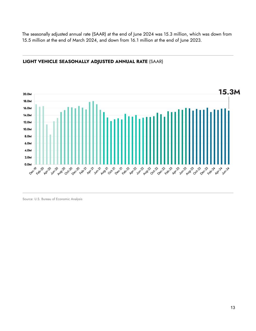 13 The seasonally adjusted annual rate (SAAR) at the end of June 2024 was 15.3 million, which was down from 15.5 million at the end of March 2024, and down from 16.1 million at the end of June 2023. LIGHT VEHICLE SEASONALLY ADJUSTED ANNUAL RATE (SAAR) Source: U.S. Bureau of Economic Analysis 15.3M