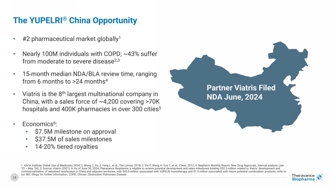 | · | Partner Viatris submitted YUPELRI NDA in China; $7.5 million milestone if approved |