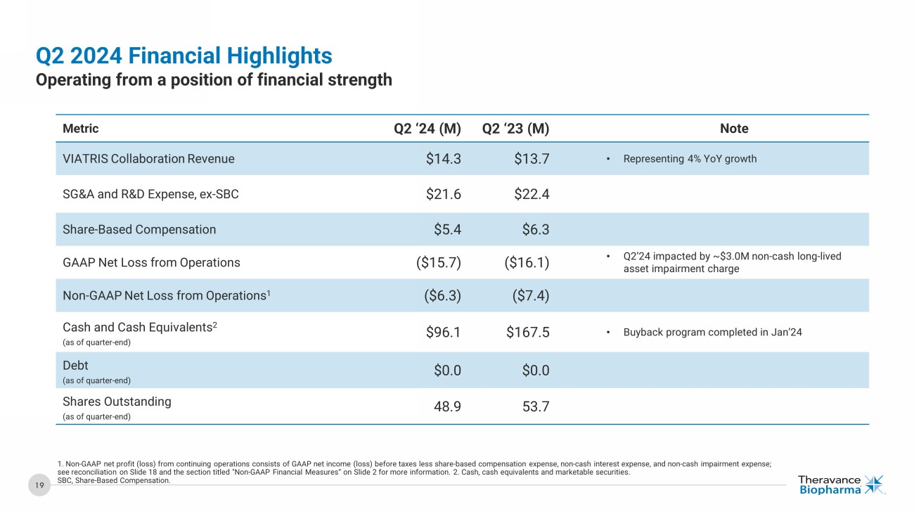 | · | Viatris collaboration revenue of $14.3 million, increased 4% versus Q2 2023 |