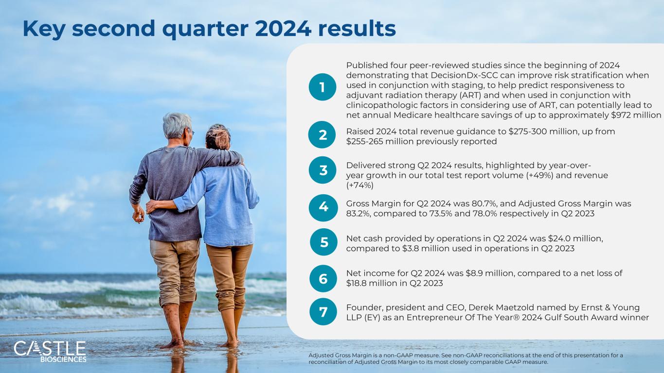 FRIENDSWOOD, Texas - Aug. 5, 2024--Castle Biosciences, Inc. (Nasdaq: CSTL), a company improving health through innovative tests that guide patient care, today announced its financial results for the second quarter and six months ended June 30, 2024.