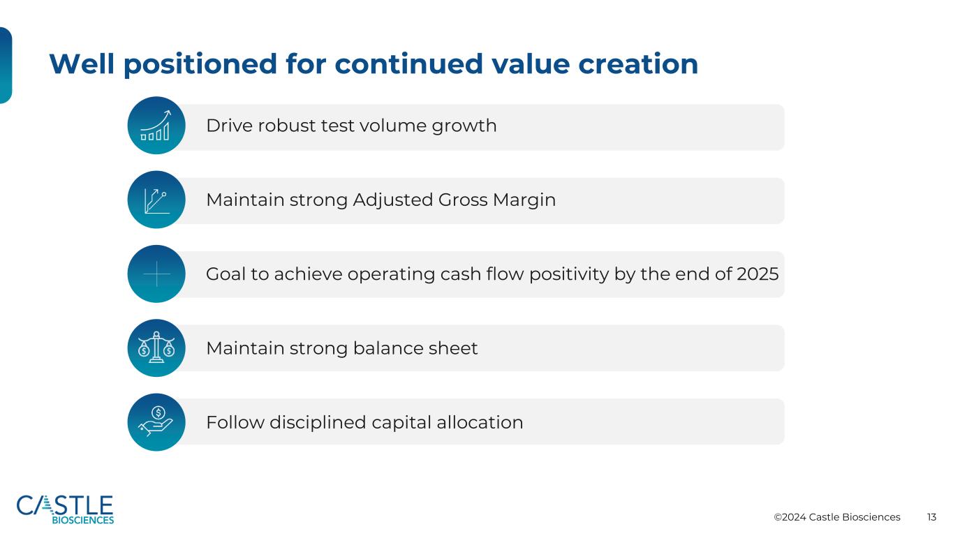 ©2024 Castle Biosciences 13 Well positioned for continued value creation Drive robust test volume growth Maintain strong Adjusted Gross Margin Goal to achieve operating cash flow positivity by the end of 2025 Maintain strong balance sheet Follow disciplined capital allocation