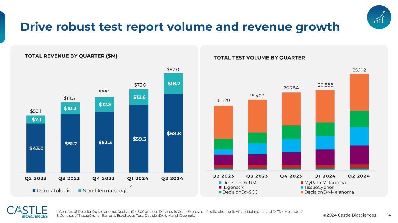 ◦MyPath® Melanoma test reports delivered in the quarter were 1,099, compared to 953 in the second quarter of 2023, an increase of 15%.