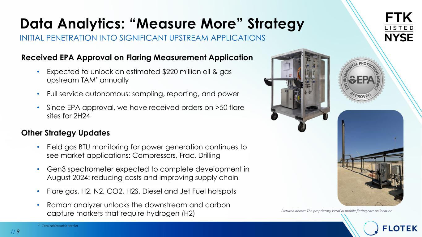 •Received approval from the Environmental Protection Agency (EPA) of the JP3 analyzer system for use in flare emission monitoring, facilitating access to a new upstream market application with an estimated annual total addressable market of $220 million.