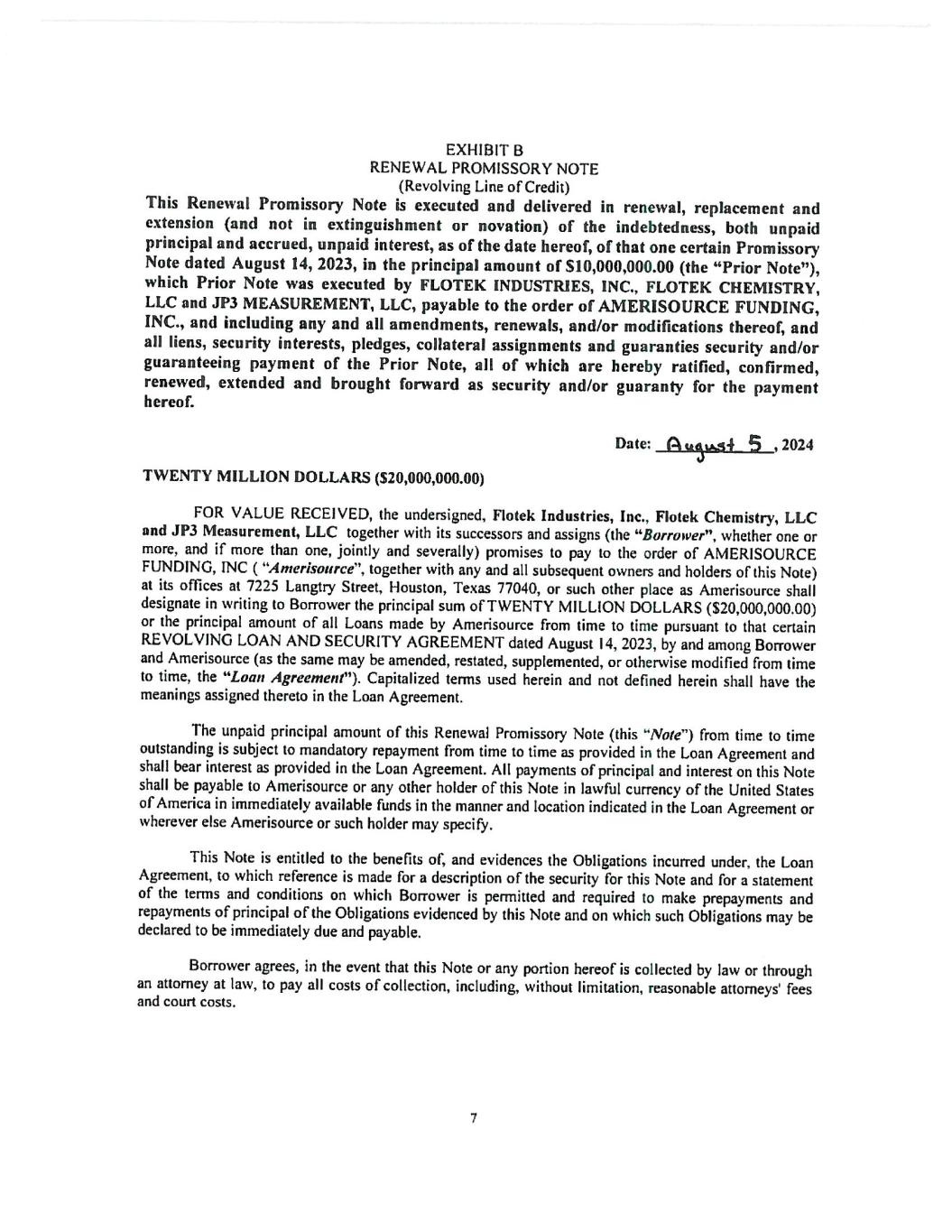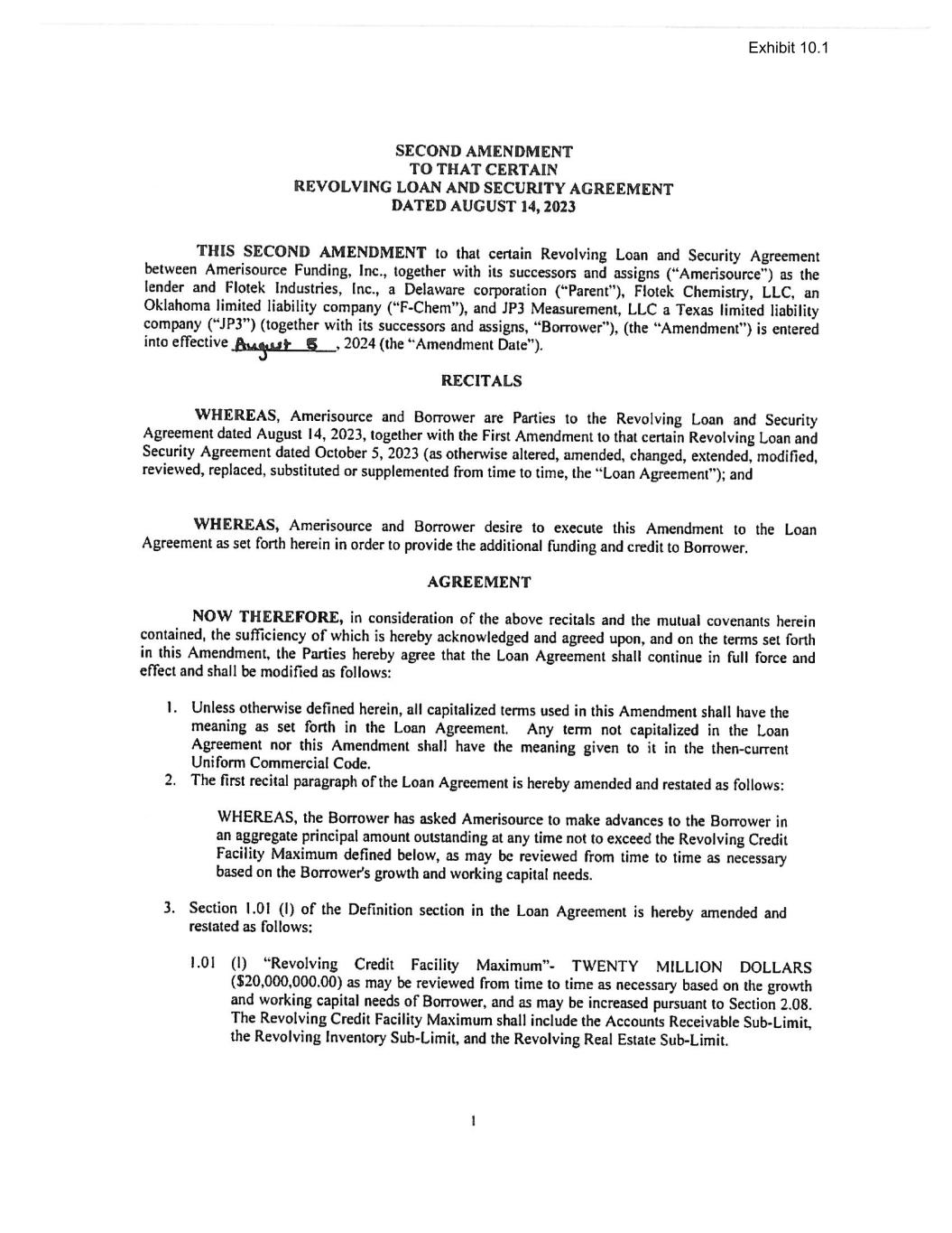 | 10.1 | | Second Amendment to That Certain Revolving Loan and Security Agreement, effective August 5, 2024, among Flotek Industries, Inc., Flotek Chemistry, LLC and JP3 Measurement, LLC, as borrowers, and Amerisource Funding, Inc., as lender |