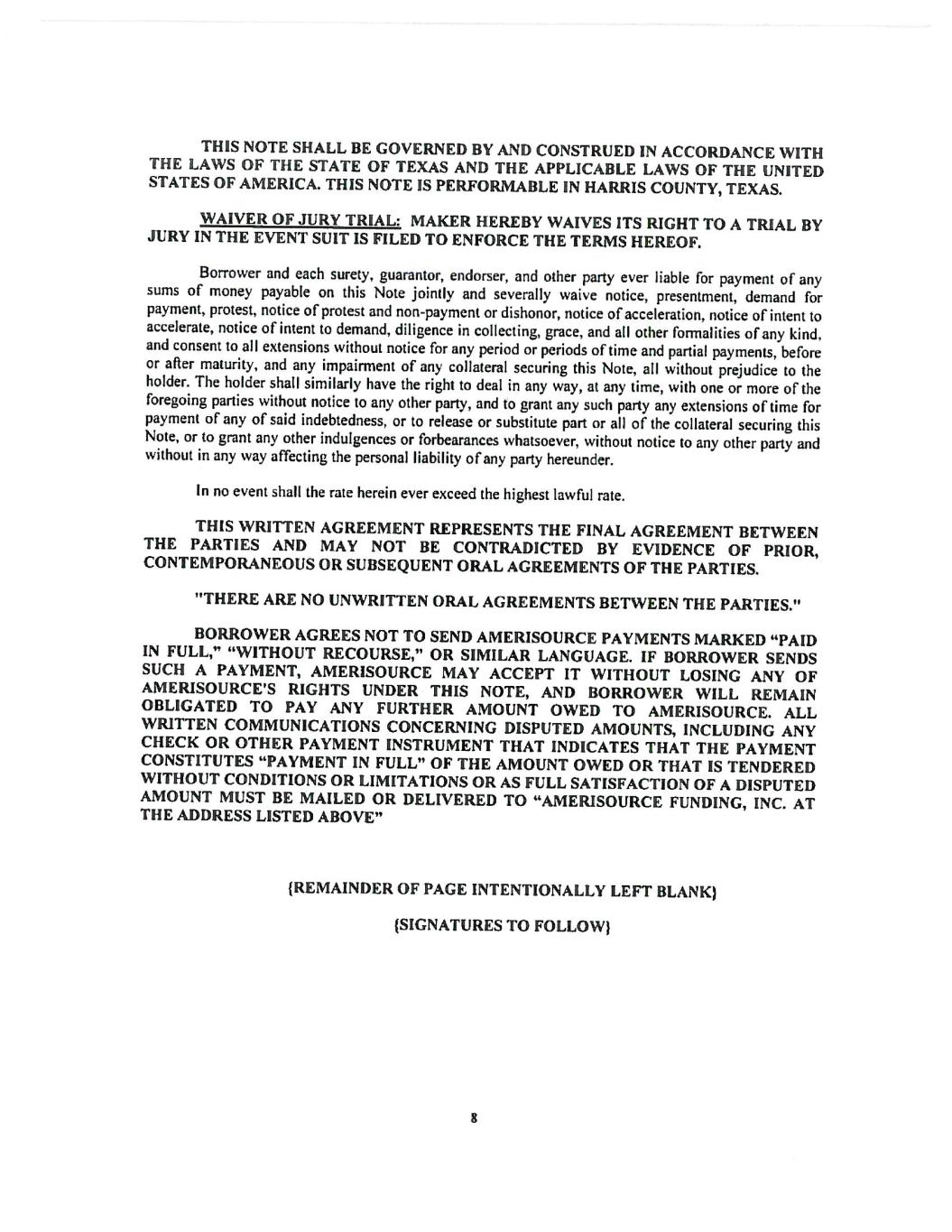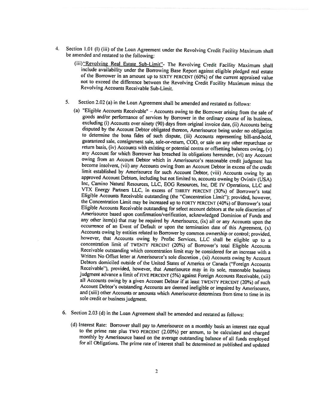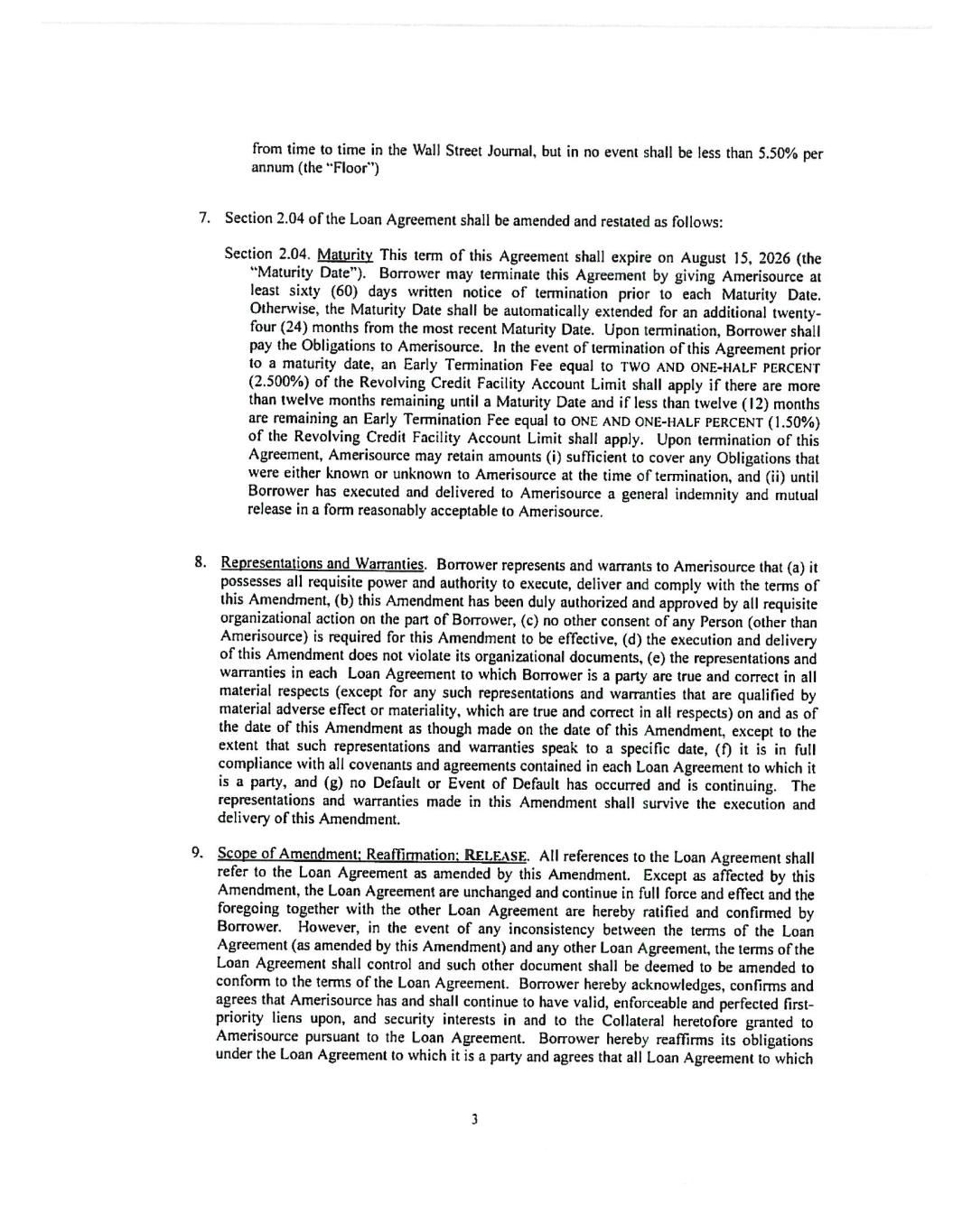 •Amended Asset Based Loan agreement increases loan commitment by 45% to $20 million and reduces interest rate.