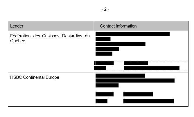 | 2. | The letter of guarantee dated June 13, 2017, number PEBHTI712017 in the amount of €8,250,000 issued by HSBC Bank Canada. |